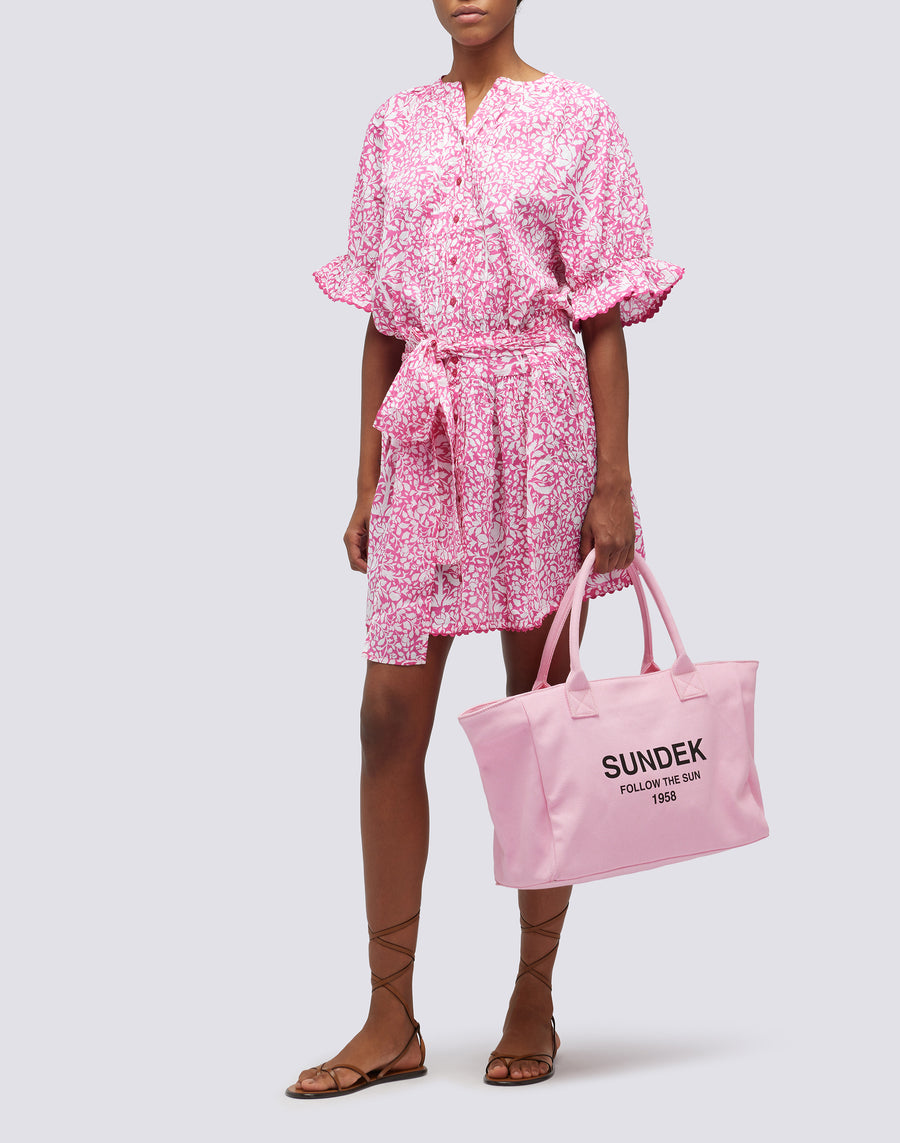 Logotipo y eslogan de Sundek impresos en contraste en la parte delantera