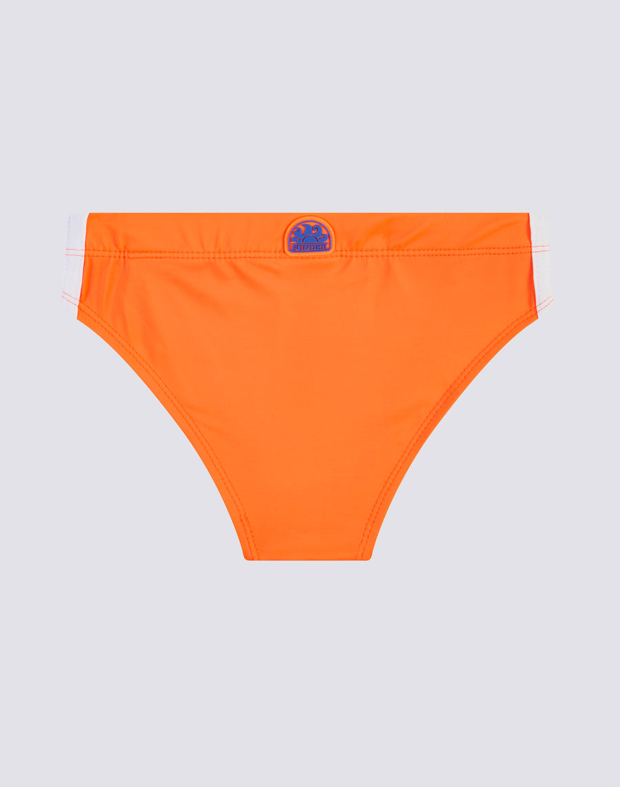 Sumérgete en los colores del arcoíris. Bañador de niño en nailon Econyl regenerado.