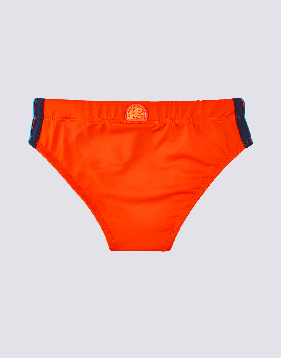 Sumérgete en los colores del arco iris. Bañador para niño en nailon Econyl regenerado.
