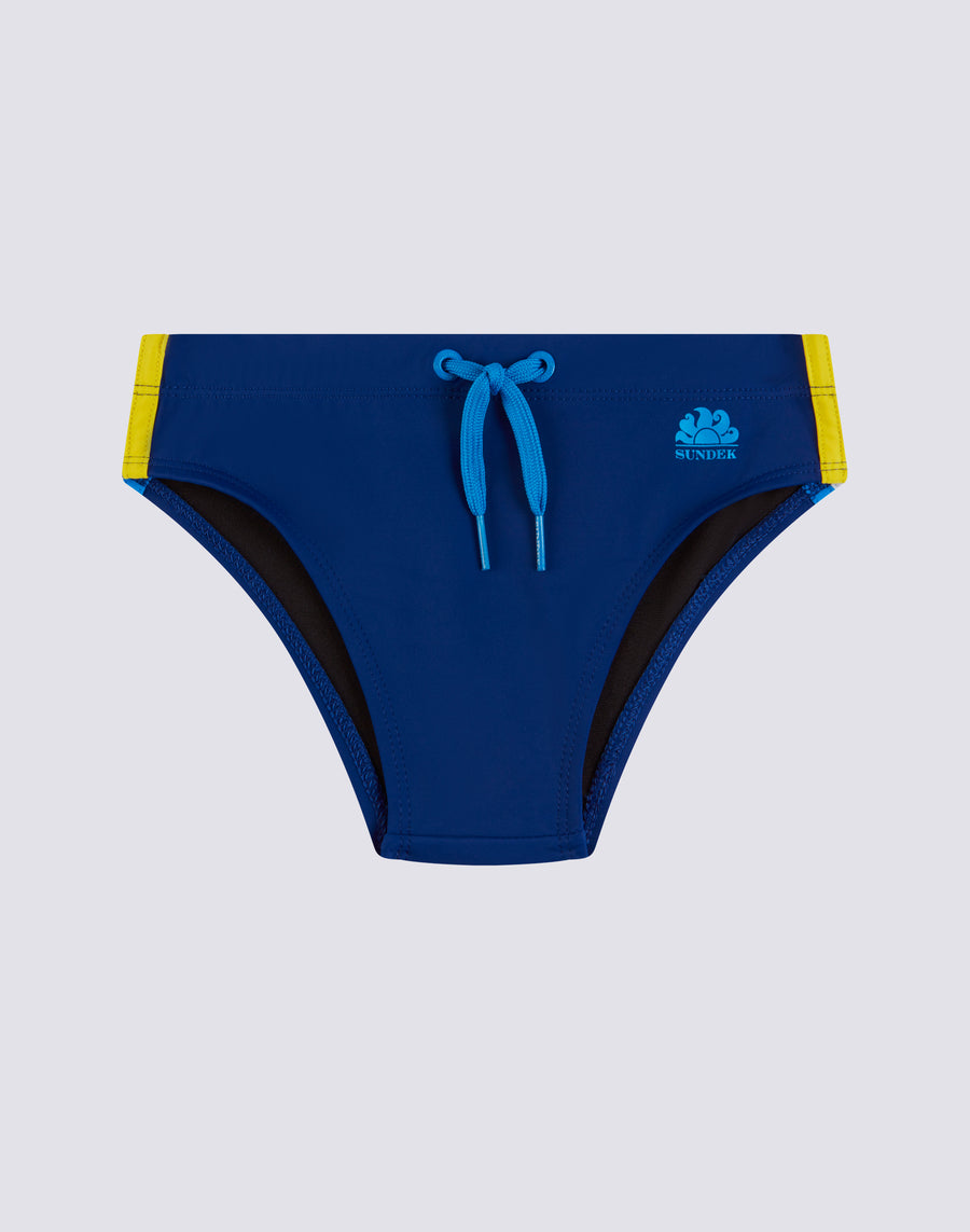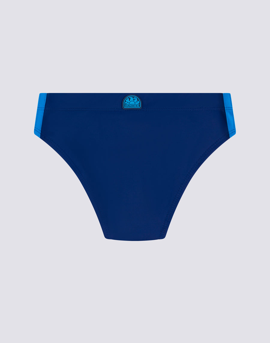 Sumérgete en los colores del arco iris. Bañador para niño en nailon Econyl regenerado.