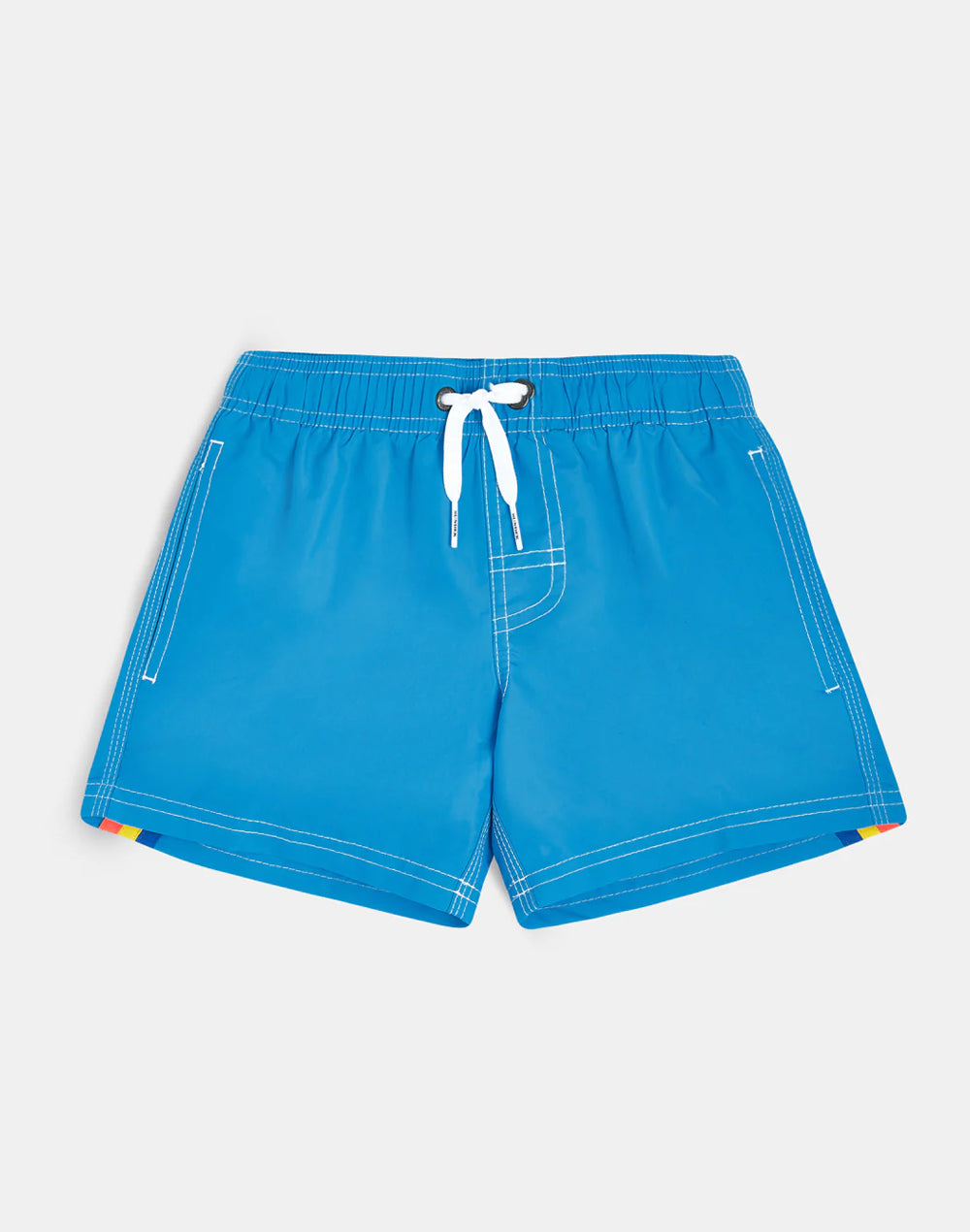 Color intenso y tejido ultracómodo y de secado rápido para este short de playa para niño. Un modelo que acompañará a tu hijo en sus múltiples actividades en vacaciones, perfecto para moverse y jugar libremente. Está confeccionado con nuestra tela de tafetán de nailon tradicional y está construido con costuras de tres agujas que lo hacen duradero con el tiempo. Para empacar, año tras año.