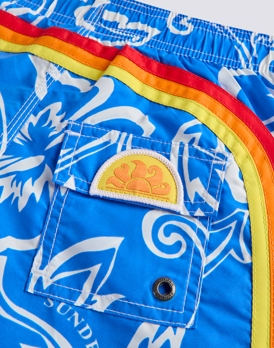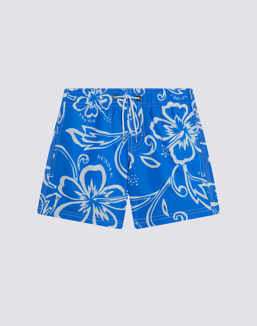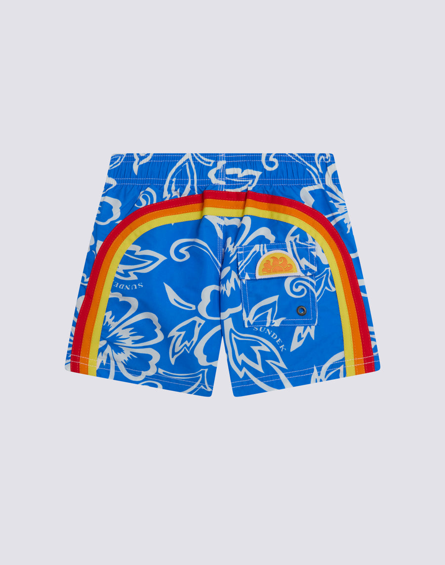 TRAJE DE BAÑO CORTO NIÑO CON CINTURA ELÁSTICA ARCHIVO ESTAMPADO HIBISCO SK23