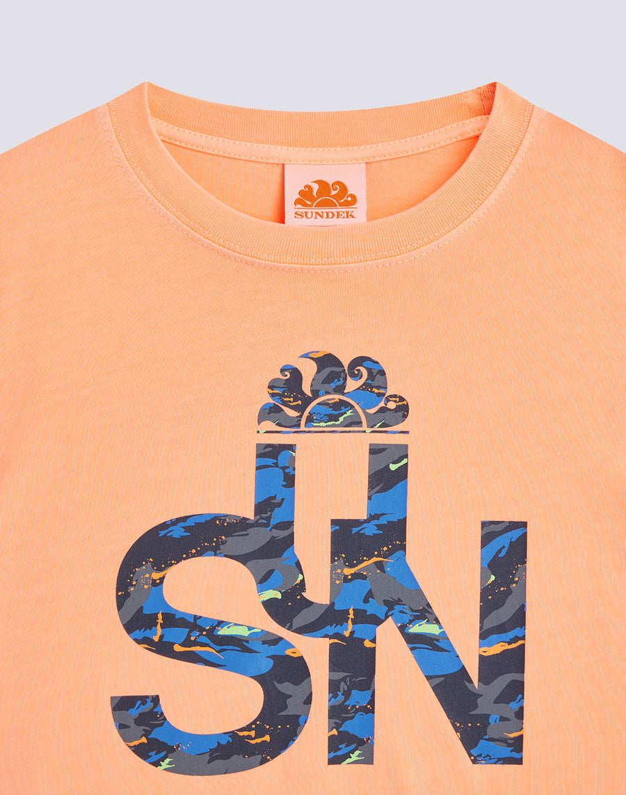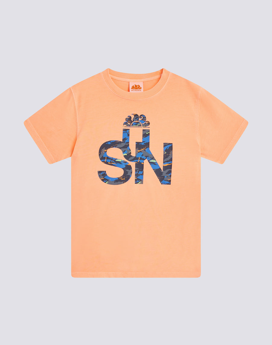 CAMISETA TEÑIDA EN PRENDA CON LOGOTIPO ESTAMPADO EN CAMUFLAJE