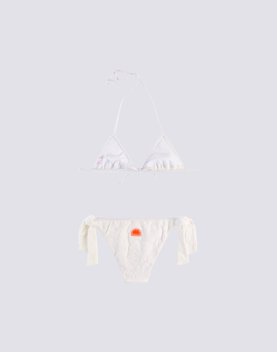Este bañador MINI KIRI BIKINI para niña es perfecto para los días soleados en la playa. Su suave tejido de rizo y su estampado floral lo hacen cómodo y a la moda. Con su diseño de triángulos, tu niña siempre irá a la moda y podrá disfrutar del calor del verano con estilo.