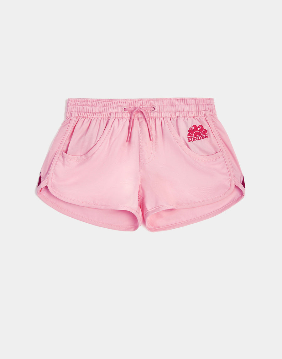 Es la versión mini del bañador Margate de mujer. Ligero y cómodo, tiene cintura baja elástica y ajustable con cordón. También se puede usar sobre el bañador o sobre la braguita del bikini.