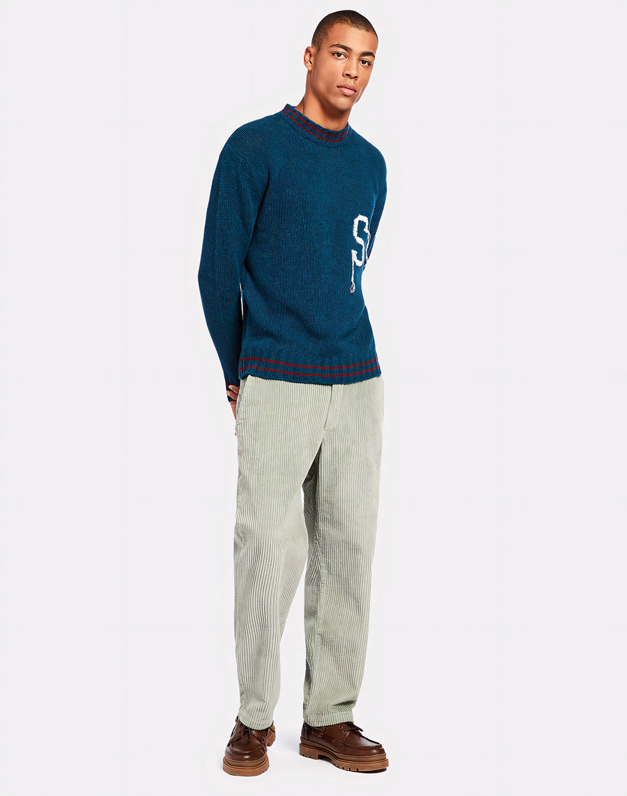 Pantalones cropped oversize de corte recto de pana sobreteñida con detalle de gancho