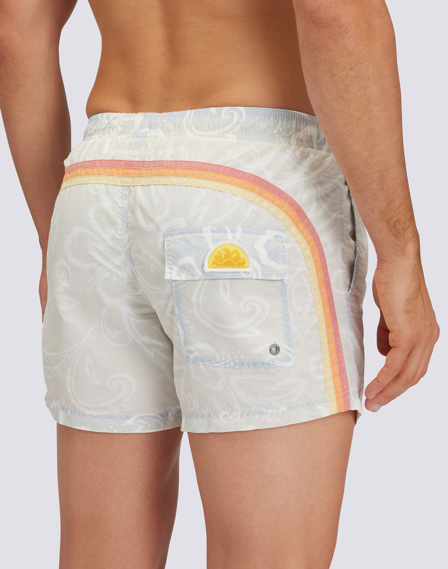 TRAJE DE BAÑO CORTO ICONIC DE TAFETÁN CON CINTURA ELÁSTICA GOLDENWAVE ESTAMPADO SK23
