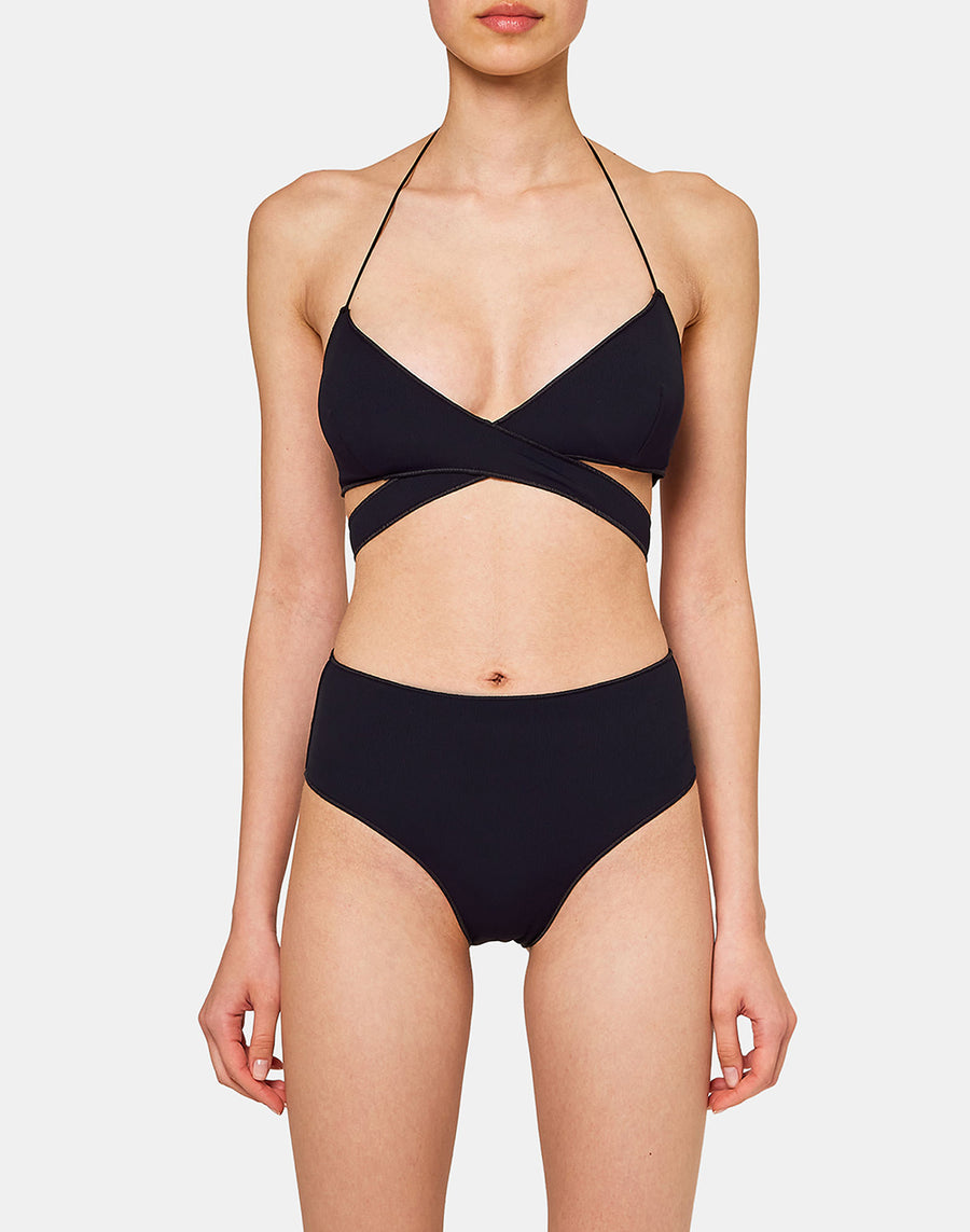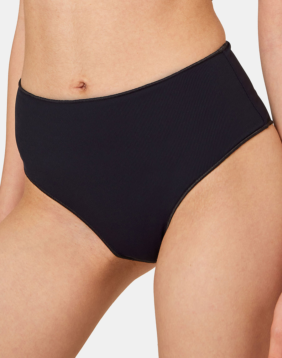 Tejido de canalé suave y costuras planas para esta braguita con cintura y laterales altos. Para combinar con el sujetador de bikini a juego que prefieras.