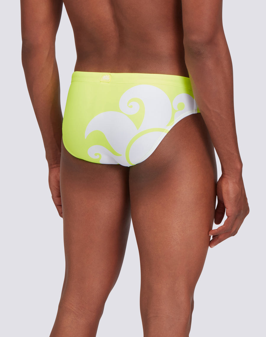 Bañador de hombre con cintura ajustable con cordón y encaje a contraste: es un modelo atemporal pero con un giro que le da nuestro icónico sol rugiente estampado en la espalda, acorde con los tiempos porque es ecosostenible gracias al ECONYL ® Made in Italy tejido regenerado. Puedes usarlo tanto para nadar como para tomar el sol y broncearte.