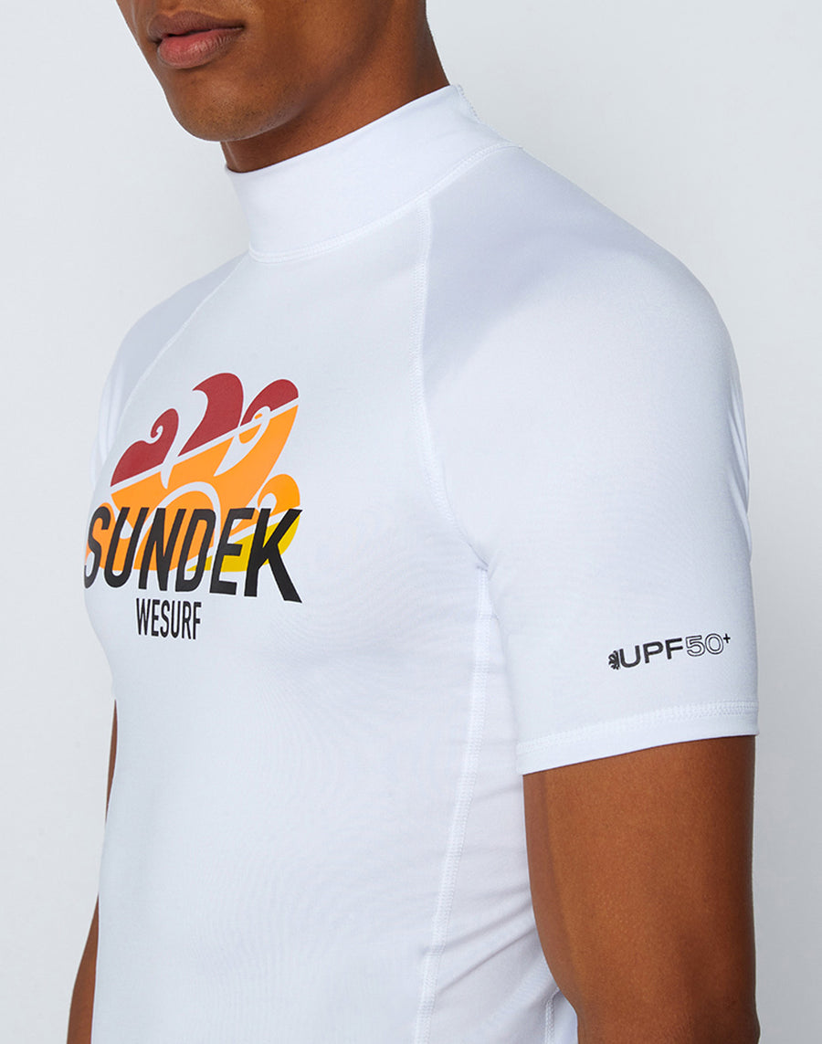 Ligera y elástica erupción elástica de la cola corta Una manga que combina la protección solar 50+, Adherencia y libertad de movimiento: la manga de raglán da un amplio espacio para la maniobra detrás y los brazos. Es un modelo unisex para cualquiera que ama la natación y especialmente para los deportes acuáticos como el surf o el SUP: Úselo para toda la protección y comodidad que espera de un Rashguard.