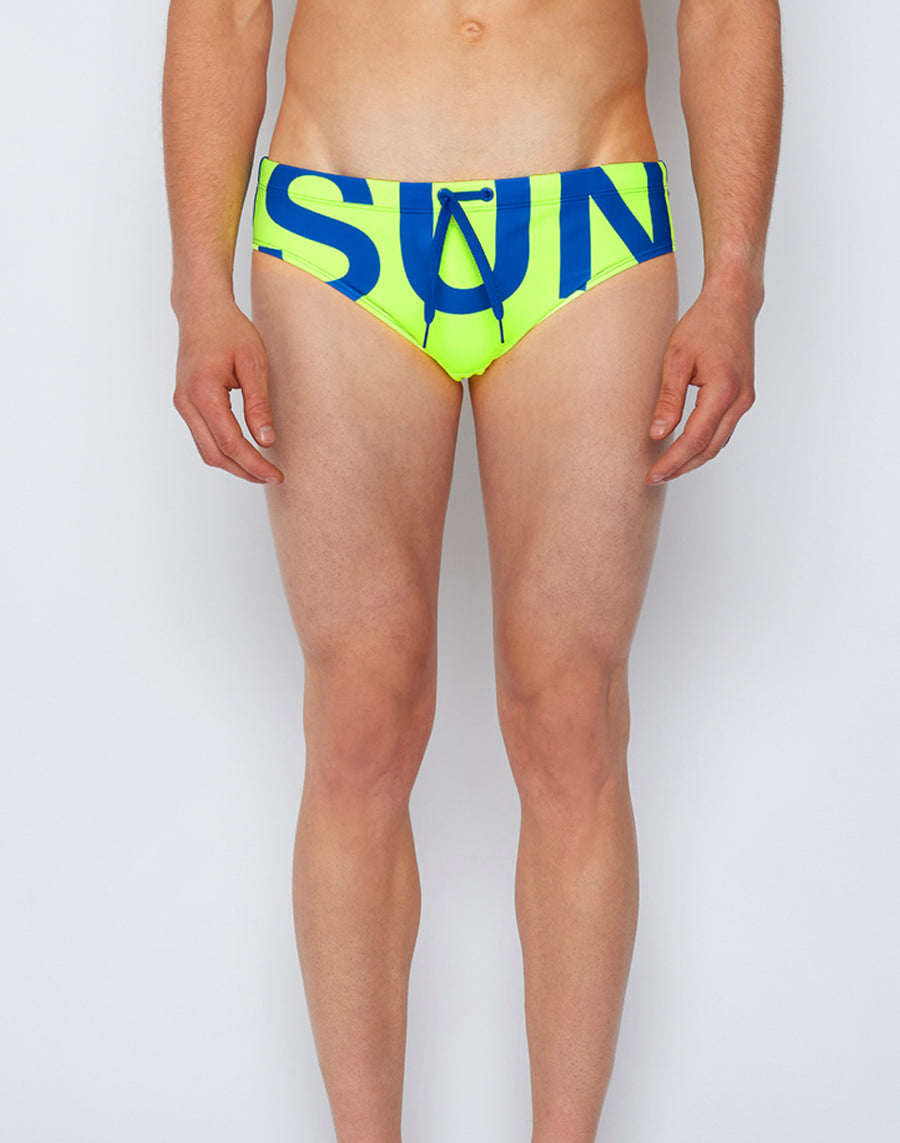 Macrologotipo decorativo en este slip de hombre realizado en tejido con protección UV. Un bañador perfecto si prefieres el modelo slip para nadar, hacer deporte en la playa y relajarte.