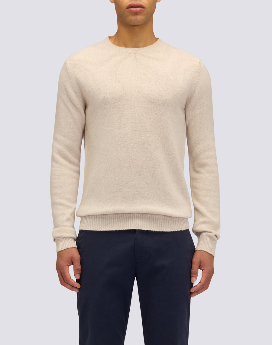 Jersey de cuello redondo para hombre en mezcla de lana, ideal para crear tanto outfits informales como más elaborados.