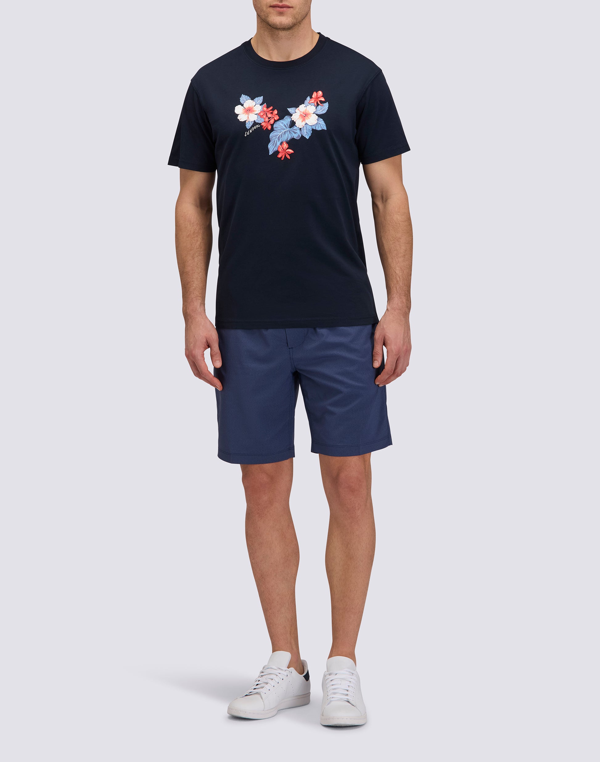 Camiseta de manga corta para hombre con microestampado floral en la parte delantera.