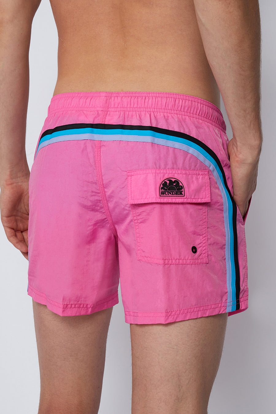 Disfraz de hombre corto de color corto con colores brillantes. Ligero, resistente, se seca muy rápidamente y está hecho de nylon de tafetán, la icónica tela del domingo. Tiene nuestras costuras clásicas de tres agujas que aumentan la resistencia con el tiempo y nuestro arco iris en la parte posterior.