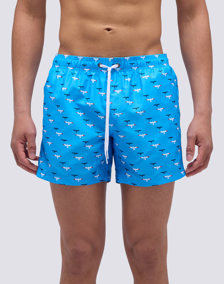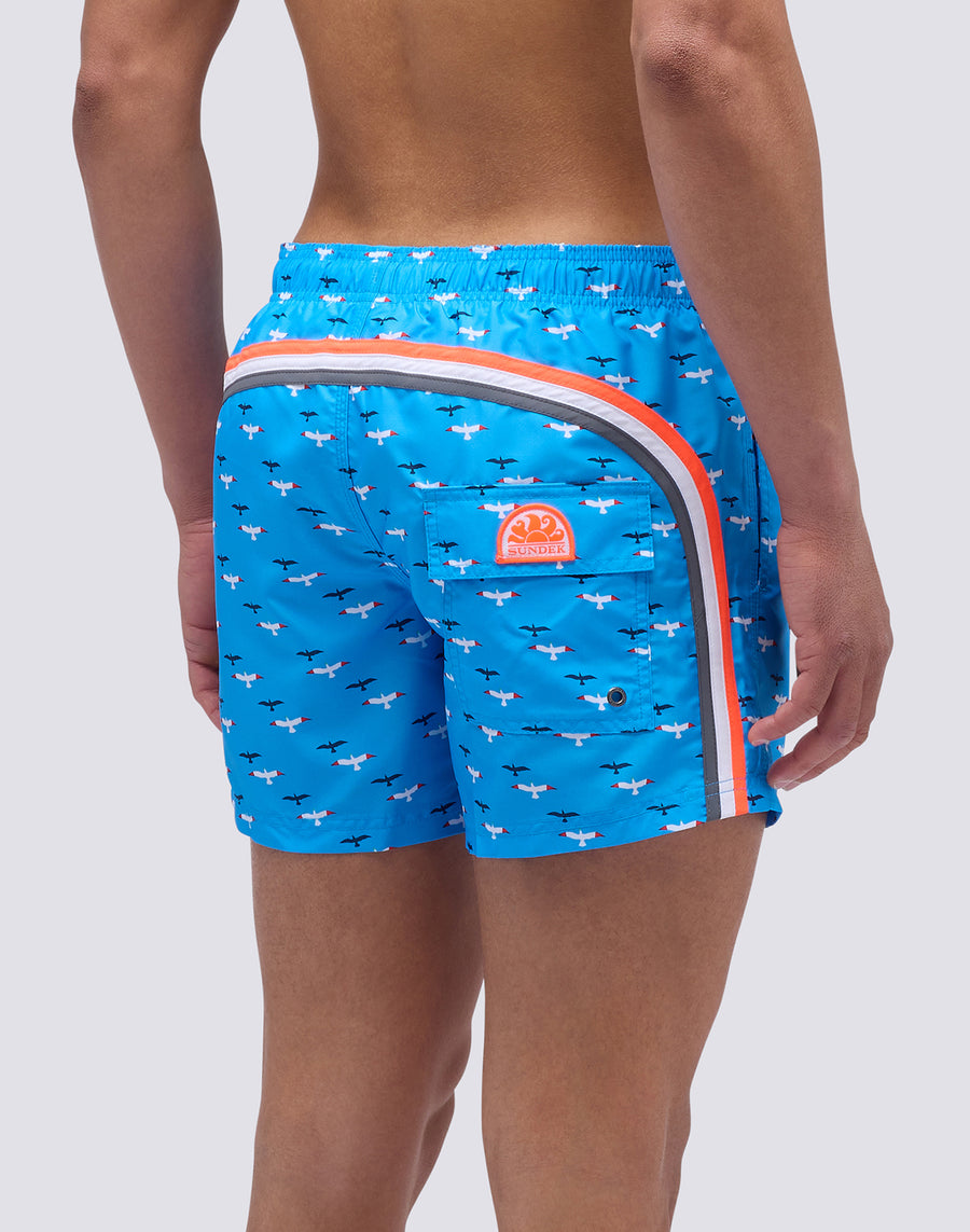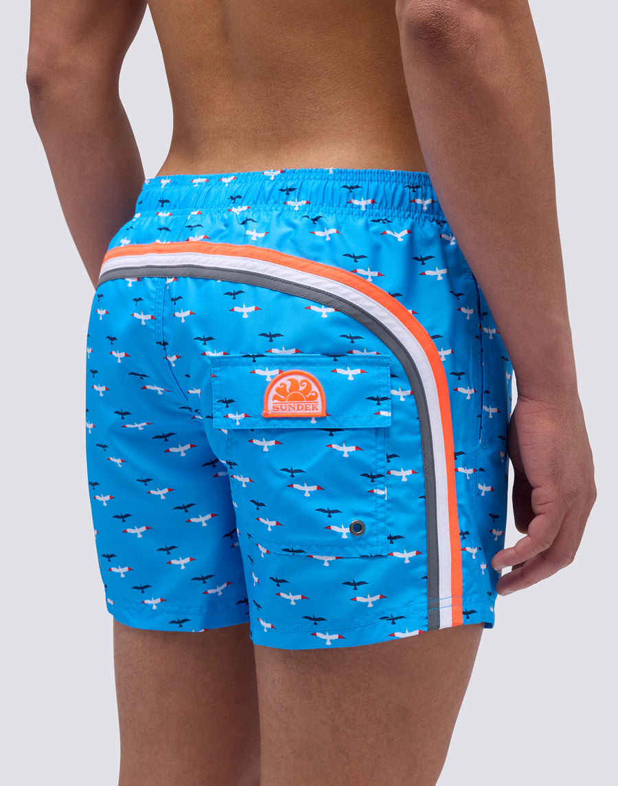 BAÑADOR CORTO DE POLIÉSTER RECICLADO CON CINTURA ELÁSTICA Y ESTAMPADO DE GAVIOTAS