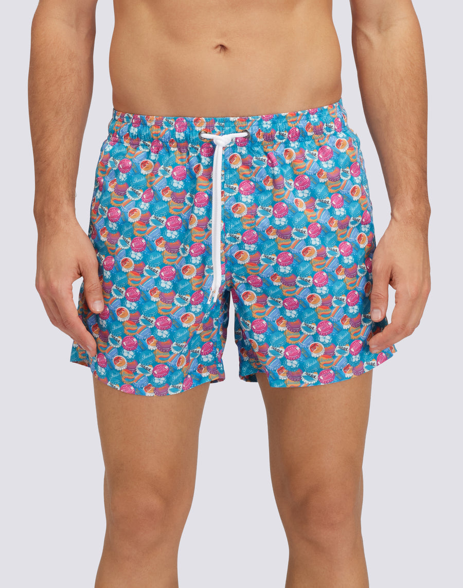 TRAJE DE BAÑO CORTO CON CINTURA ELÁSTICA Y ESTAMPADO SUNCAP DE POLIÉSTER RECICLADO