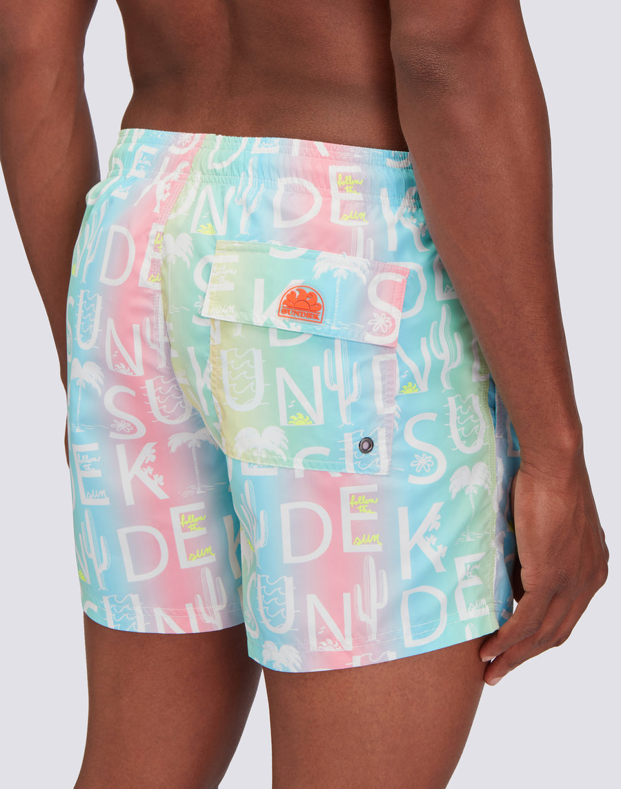 TRAJE DE BAÑO CORTO CON CINTURA ELÁSTICA Y ESTAMPADO SUMMERPAY DE POLIÉSTER RECICLADO