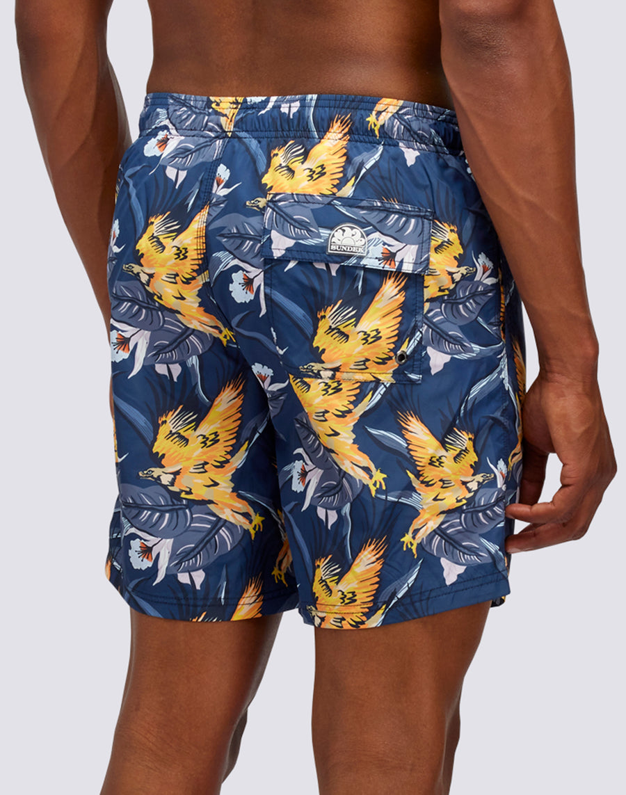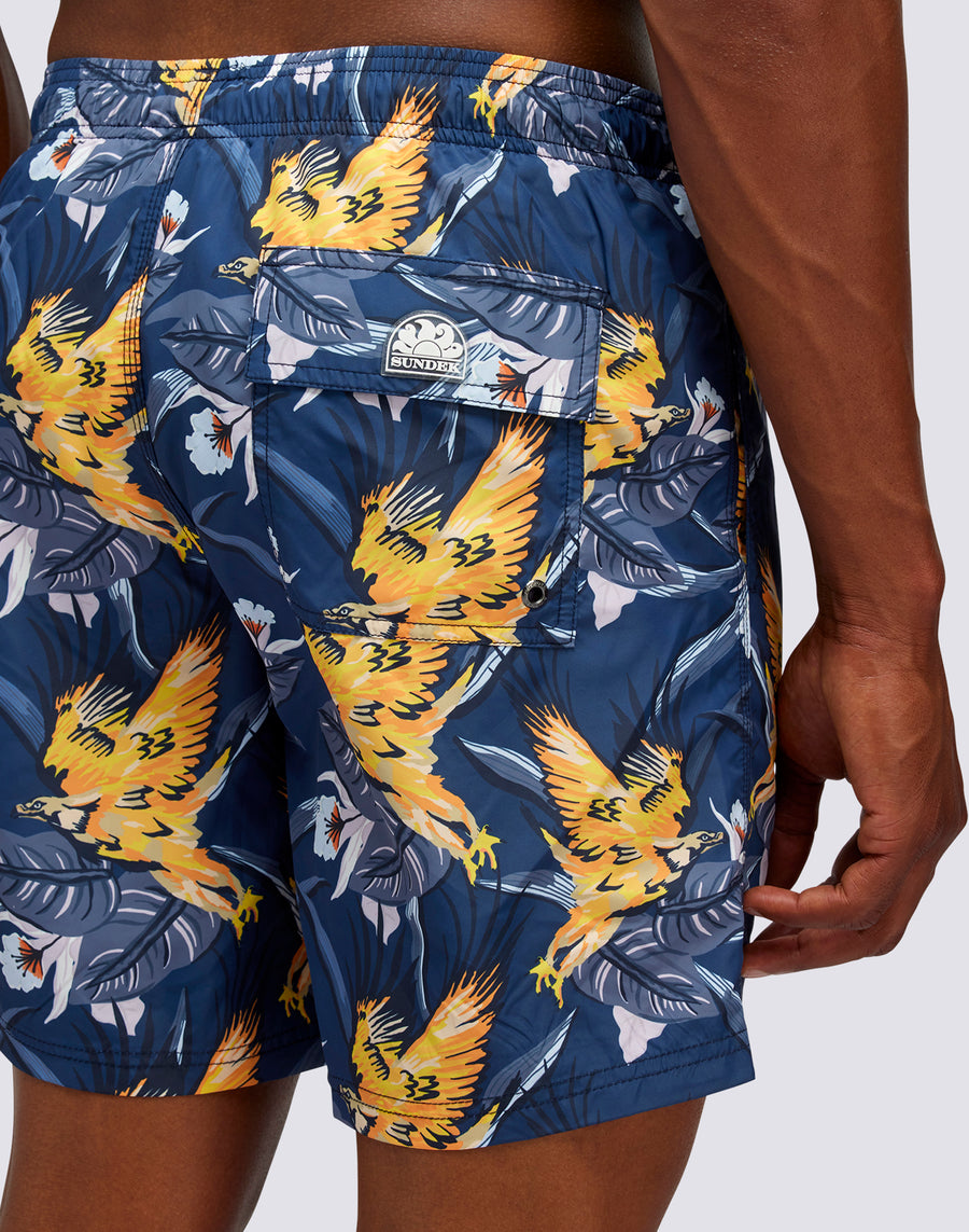 BAÑADOR MEDIANO CINTURA ELÁSTICA ESTAMPADO ÁGUILA FLORECIENTE
