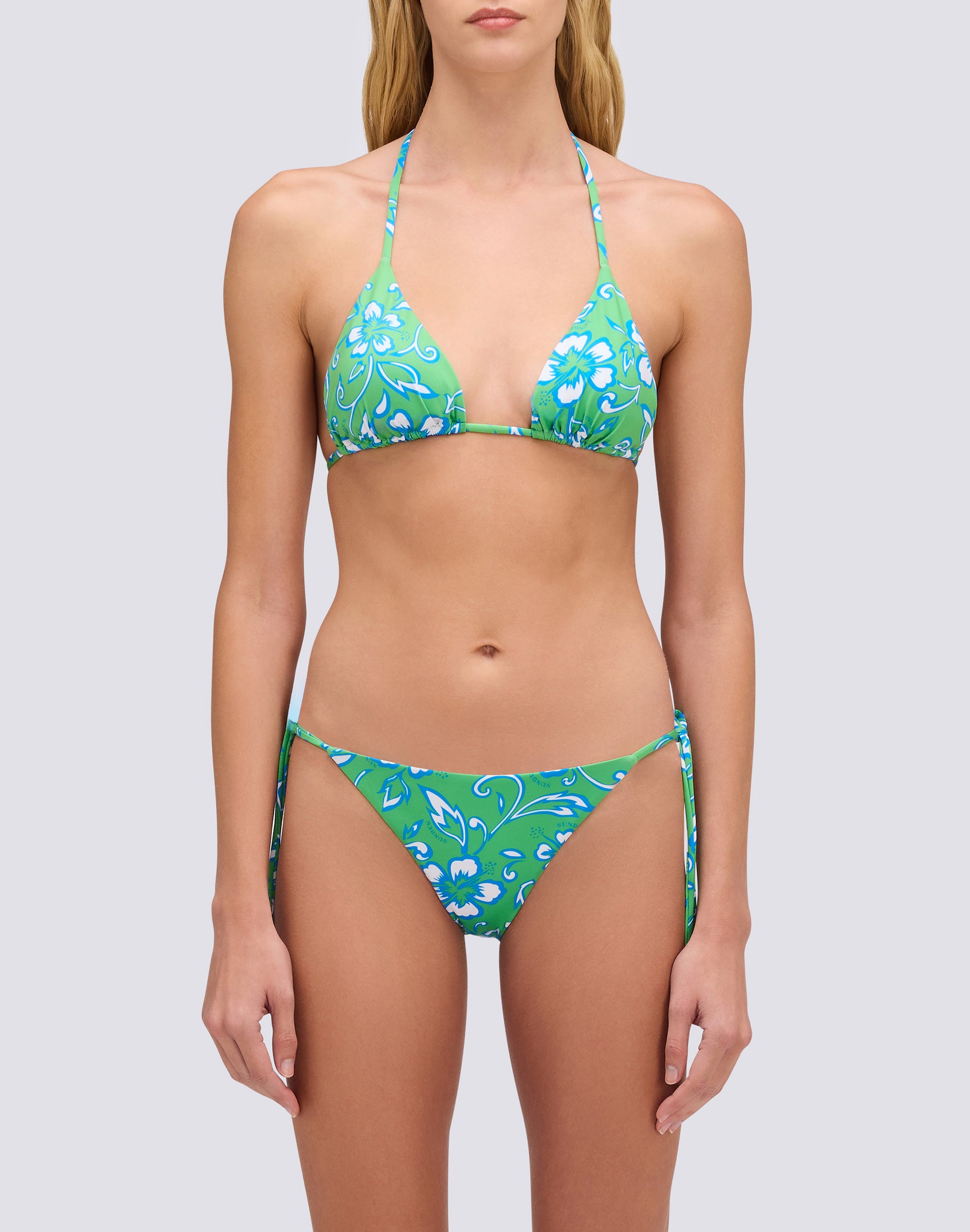 El top de triángulo Jennifer presenta un estampado tradicional de Sundek SK23 con flores de colores, perfecto para un divertido look veraniego en la playa. Comodidad y estilo se unen para ofrecerte un bañador de mujer que resalta tu personalidad y tu gusto único.