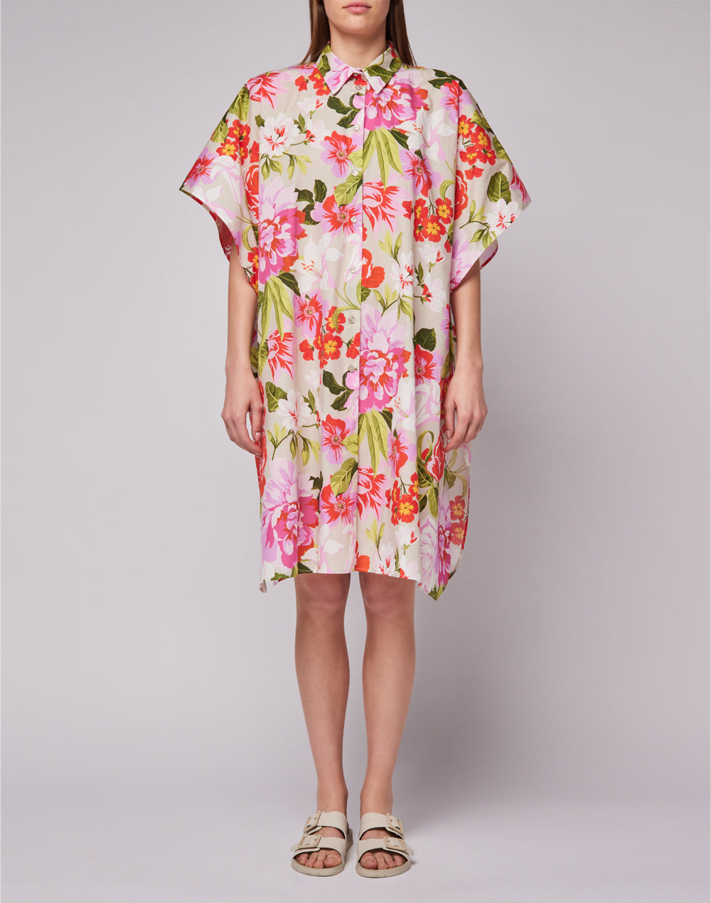 Todos los colores de la polinesia en esta camisa de algodón maxi con estampado floral. Perfecto en el mar sobre el disfraz o en momentos de relajación, para completar looks casuales con un toque de vivacidad.