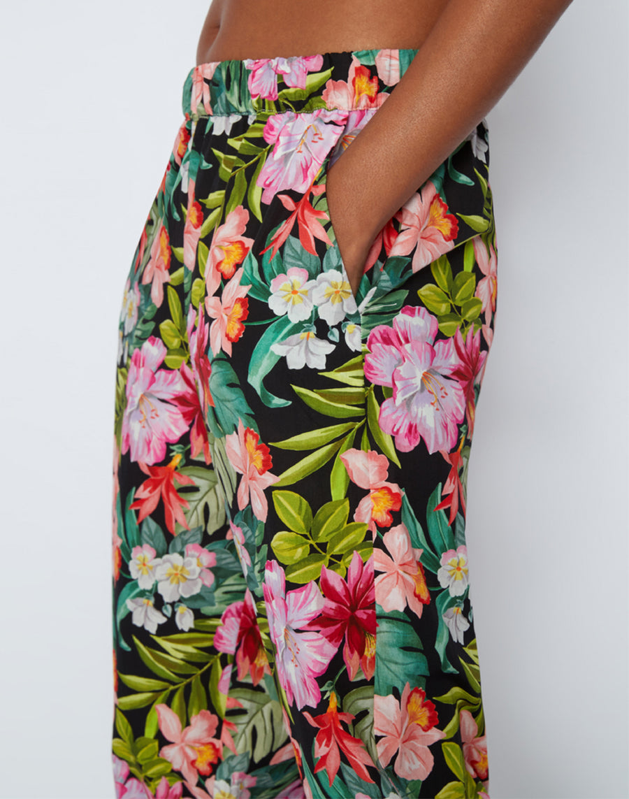La impresión del tema floral caracteriza estos pantalones grandes en algodón suave. Frescos y cómodos, son ideales para combinar con camisa coordinada. Dale vida a los apariencia sofisticada y de estilo.