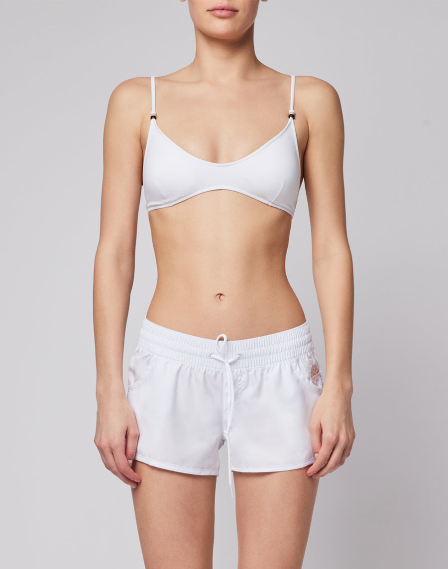 Bañador de mujer corto y de tiro bajo, para llevar al nadar o encima del bañador. Si te encantan los shorts de playa de mujer, empaca inmediatamente este modelo corto con cintura elástica y cordón, ligero y cómodo para usar todos los días en la playa y perfecto para nadar.