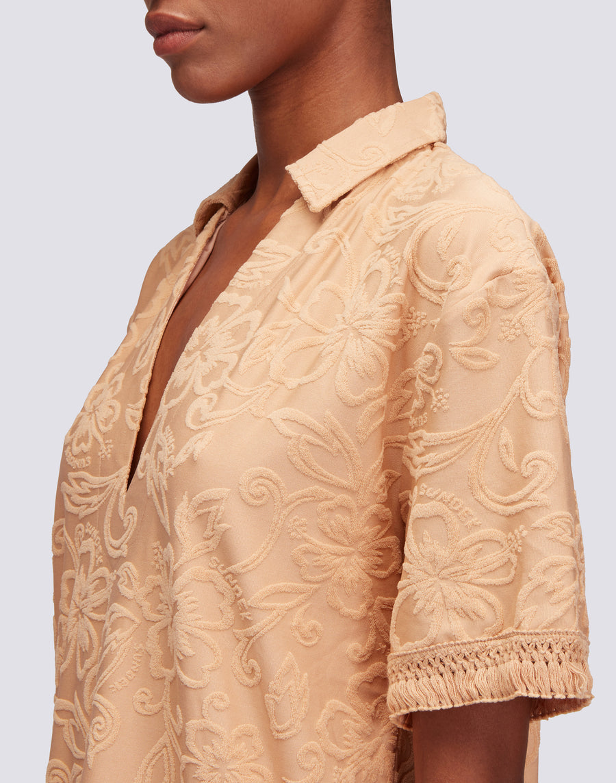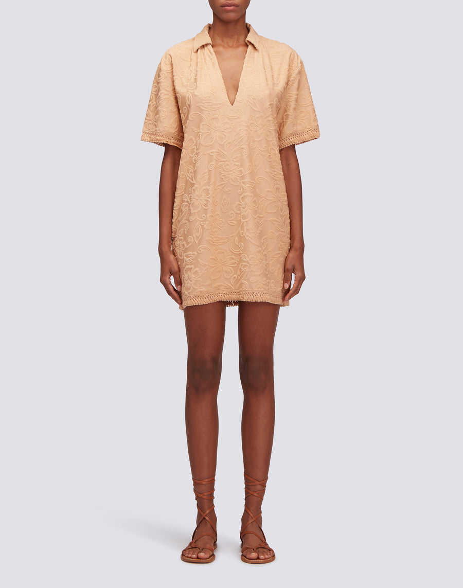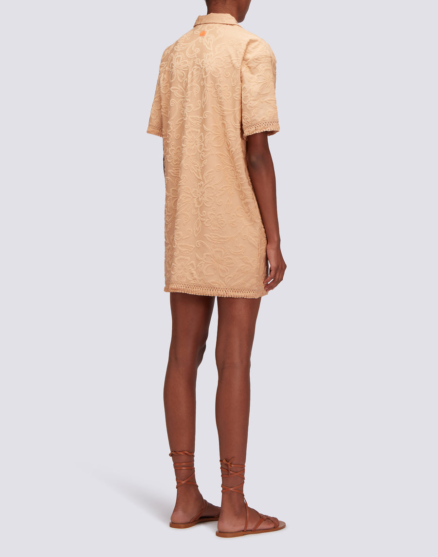 VESTIDO CORTO DE RIZO JACQUARD CON FLECOS