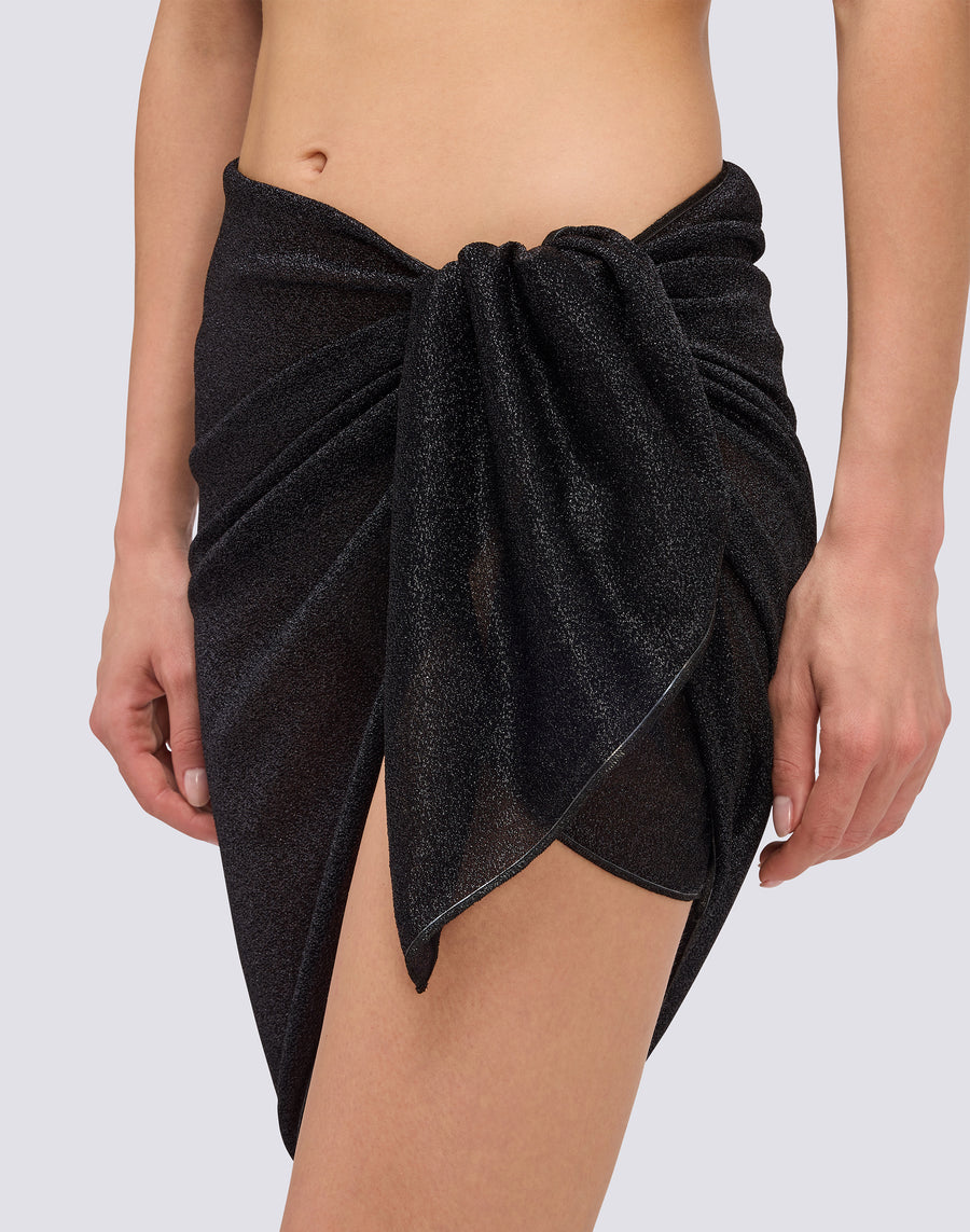 El pareo corto en lurex es el accesorio perfecto para un look playero brillante y glamuroso. Confeccionado en tejido elástico, se adapta perfectamente y se puede combinar fácilmente con tu bikini favorito. Añade un toque de luz a tus días en la playa con este pareo.