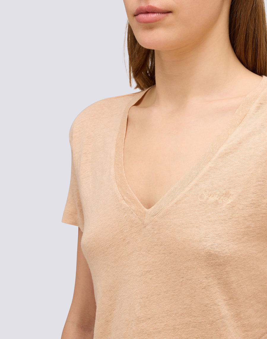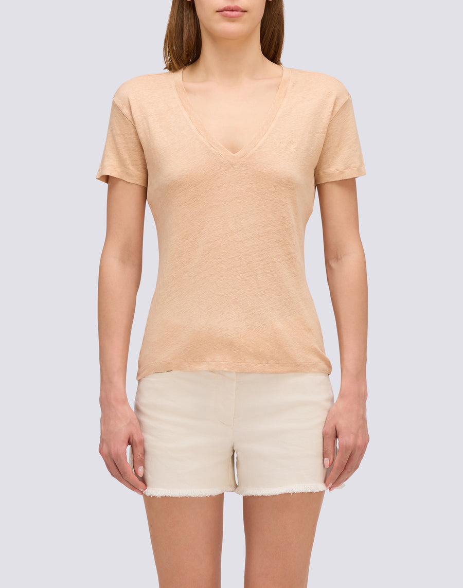 La camiseta de manga corta de lino es ideal para el verano: ligera, fresca y cómoda. Confeccionada en tejido de lino de alta calidad, esta camiseta para mujer es perfecta para mantener una sensación de frescura y comodidad incluso en los días más calurosos. Disponible en una gran variedad de colores, es una prenda imprescindible para tu armario de verano.