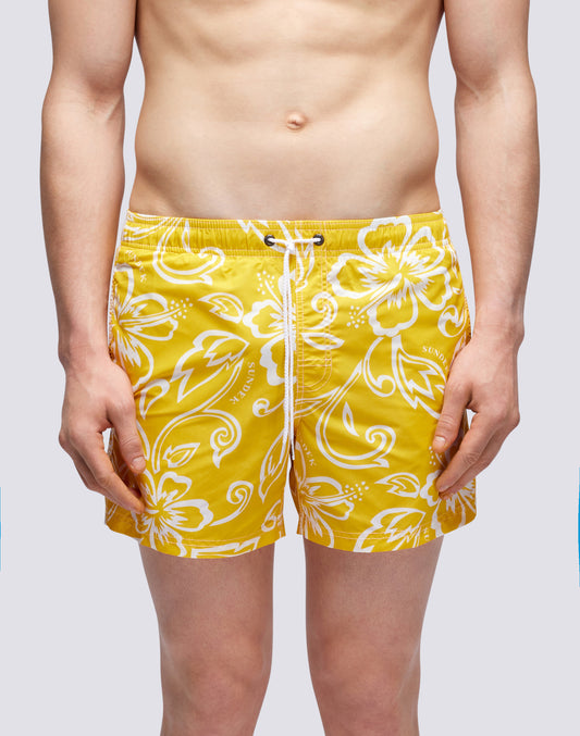 COSTUME DA BAGNO CORTO VITA FISSA ICONIC TAFFETA CON STAMPA HIBISCUS SK23