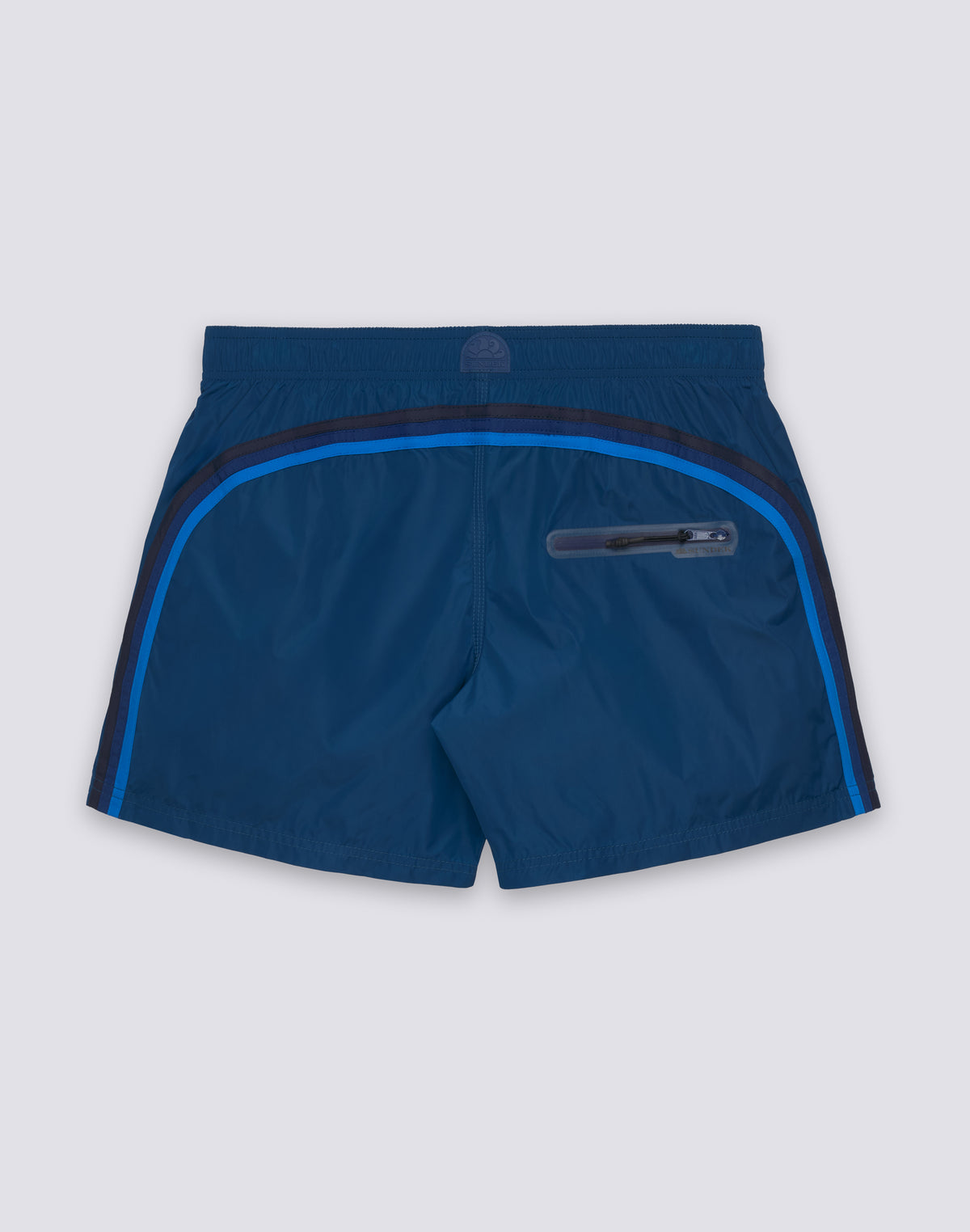 Se cerchi comfort, leggerezza, praticità, durata nel tempo e un look pulito, i costumi da bagno in taffetà sono l'ideale. Il taffetà è un tessuto liscio e croccante, realizzato in nylon o poliestere per i costumi da uomo. È un tessuto leggero che non appesantisce quando bagnato, garantendo comfort sia in acqua che fuori. Ha la proprietà di asciugarsi molto rapidamente, un vantaggio fondamentale per i costumi da bagno. Nonostante la sua leggerezza, è un tessuto resistente all'usura, ideale per un capo che viene spesso a contatto con acqua, sabbia e sole; mantiene colore e aspetto nel tempo. È inoltre un tessuto che tiene bene la forma. Può avere una leggera lucentezza o un aspetto più opaco a seconda della lavorazione. Generalmente facile da lavare e non tende a stropicciarsi eccessivamente. Il costume da uomo in taffetà è una scelta pratica e confortevole, ideale per godersi le giornate estive con un tocco di stile classico e pulito.