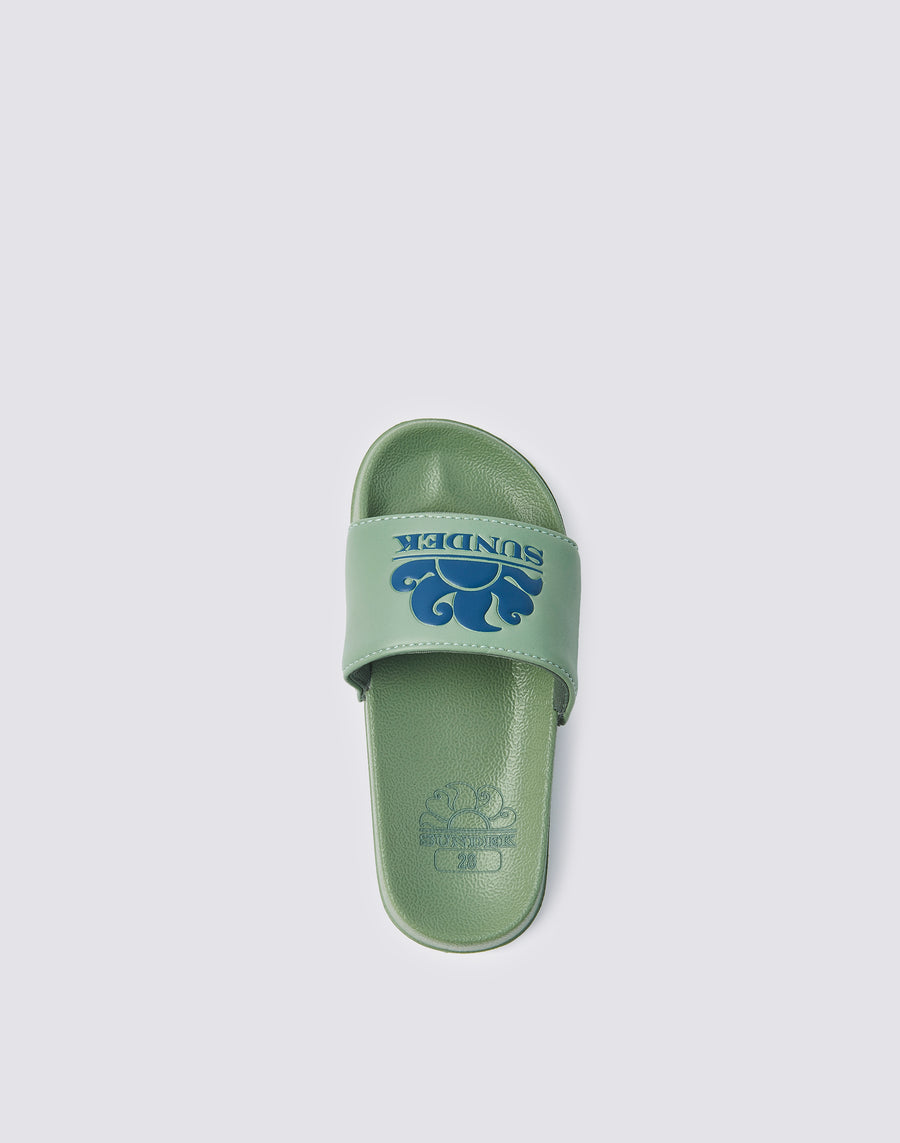 Ciabatte a fascia Costa da bambino, gommate e dalla calzata confortevole. Si caratterizzano per la stampa del logo Sundek sulla fascia, a contrasto, e per l'altezza della suola di 2,5 cm.