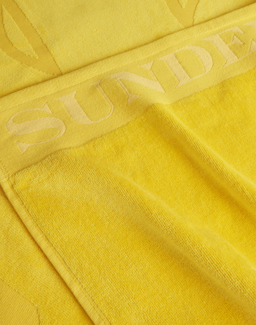Un tocco di colore brillante per il tuo relax e le tue attività in vacanza con questo telo da mare in morbida spugna con maxi logo. Dimensioni: 100x180 cm, 440 gr.