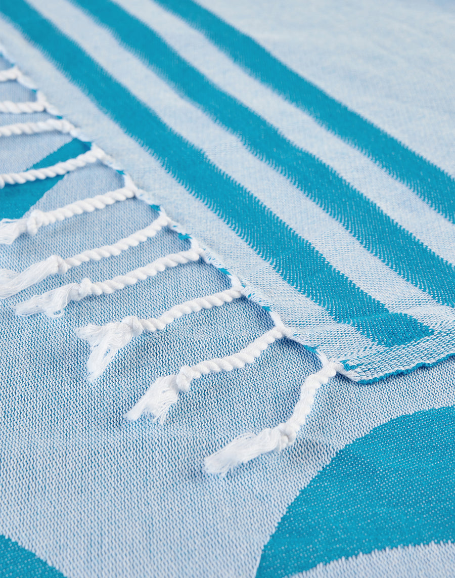 Telo mare fouta jacquard con maxi logo a contrasto con righe verticali e fondi con frange intrecciate. Lunghezza: 100x170 cm. Peso: 320 gr.