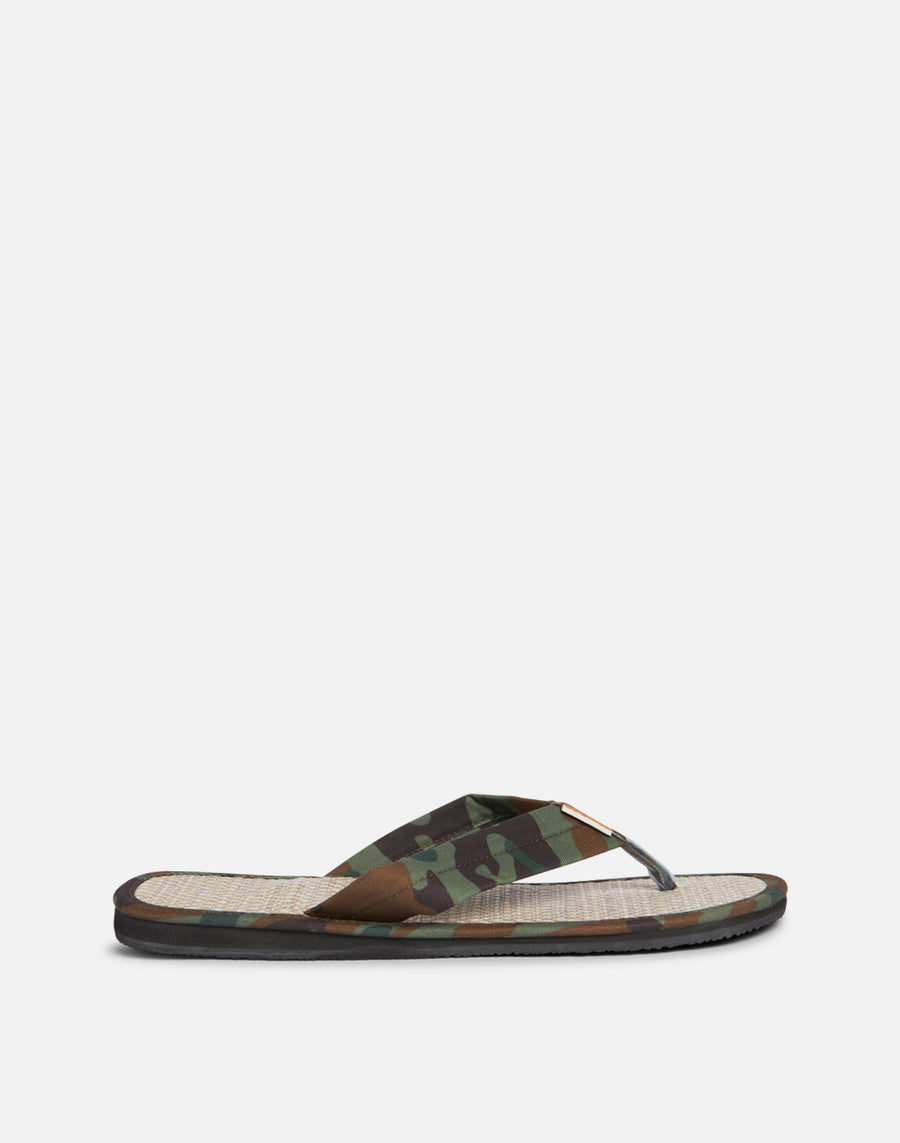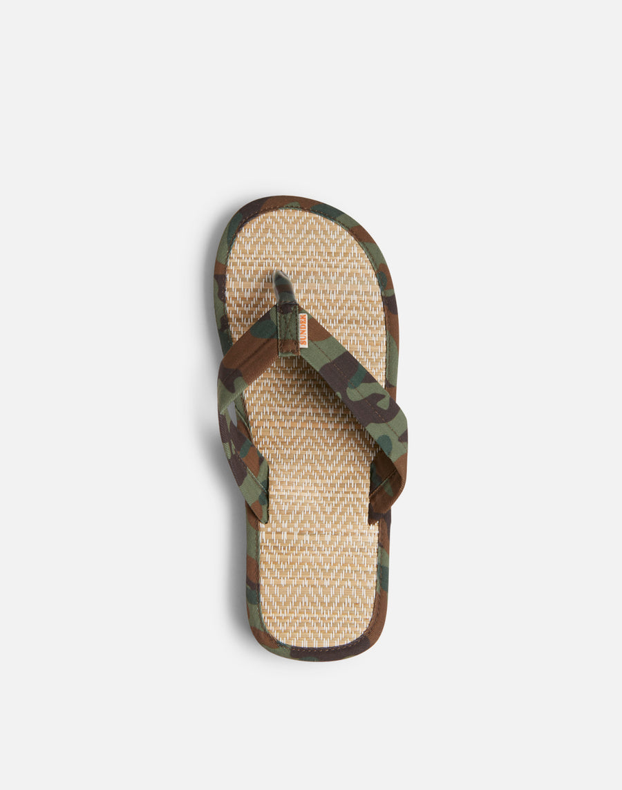 Mostra il tuo lato più wild con ai piedi queste ciabatte infradito con stampa camouflage. La suola è in rattan e offre un notevole comfort. Numeri disponibili: 39-40-41-42-43-44-45-46.