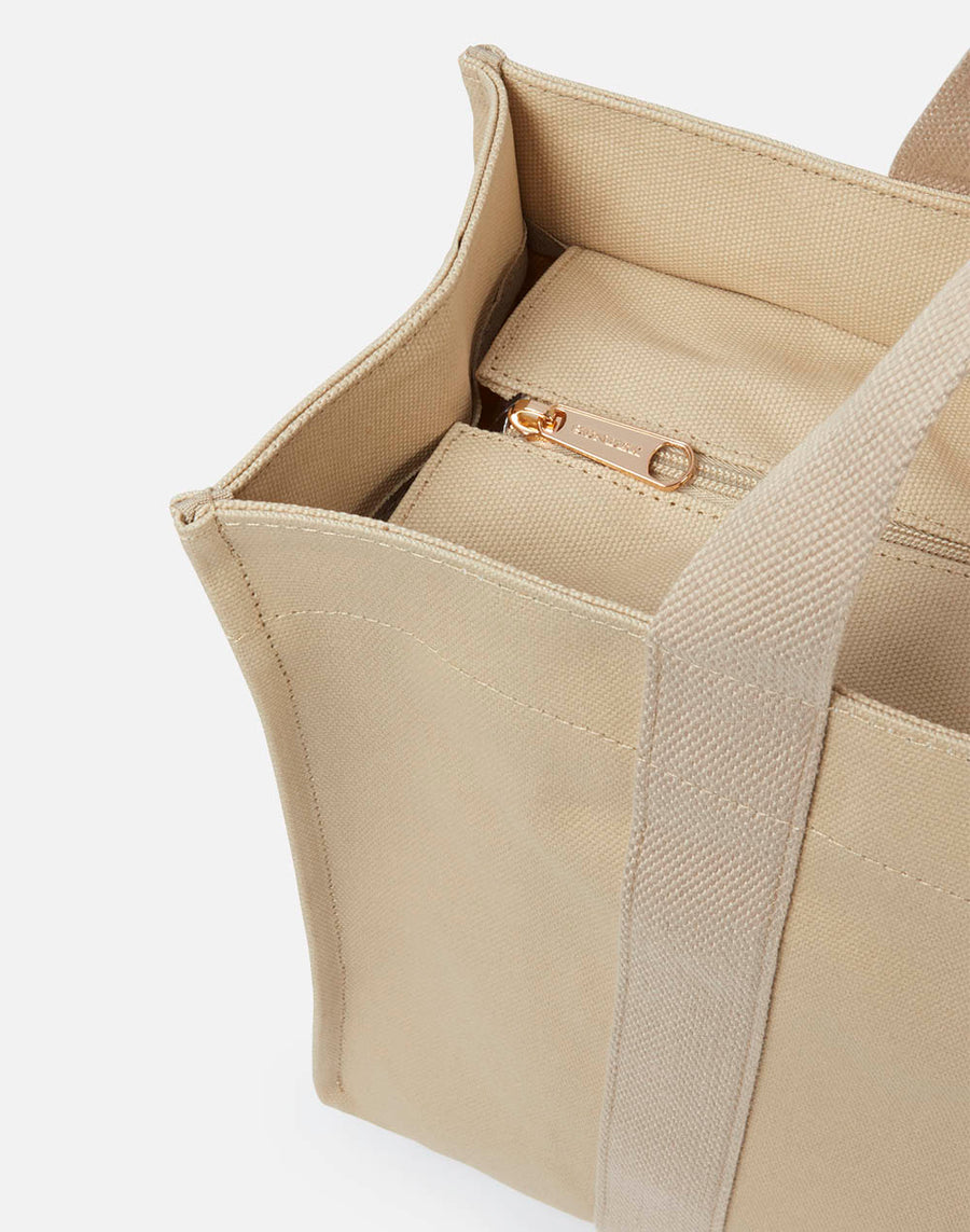 Ampia e versatile, questa canvas tote bag è perfetta da abbinare ai tuoi outfit di stagione. Modello regular.