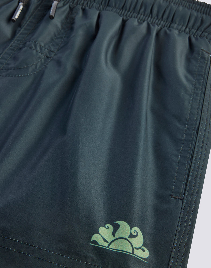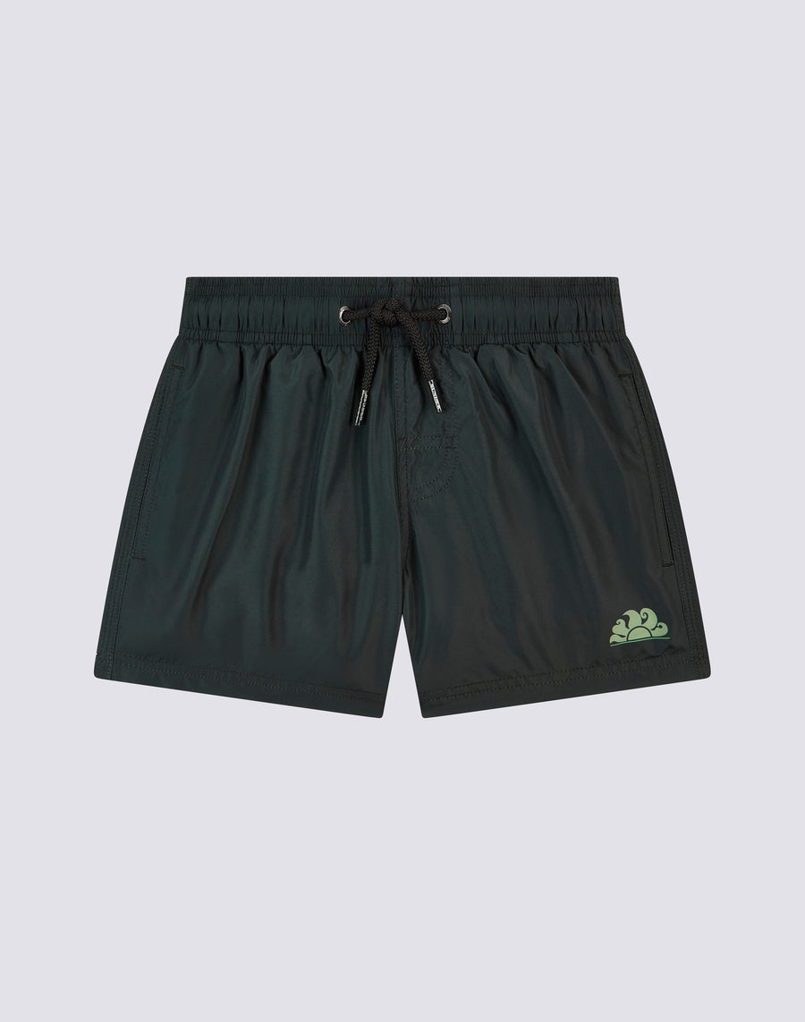 Tessuto iper-confortevole e leggero in poliestere riciclato per questi pantaloncini mare bimbo. Un modello che accompagnerà il tuo bimbo nelle sue mille attività in vacanza, perfetto per muoversi e giocare in piena libertà. Realizzato con logo in stampa camou, è da mettere in valigia, anno dopo anno.