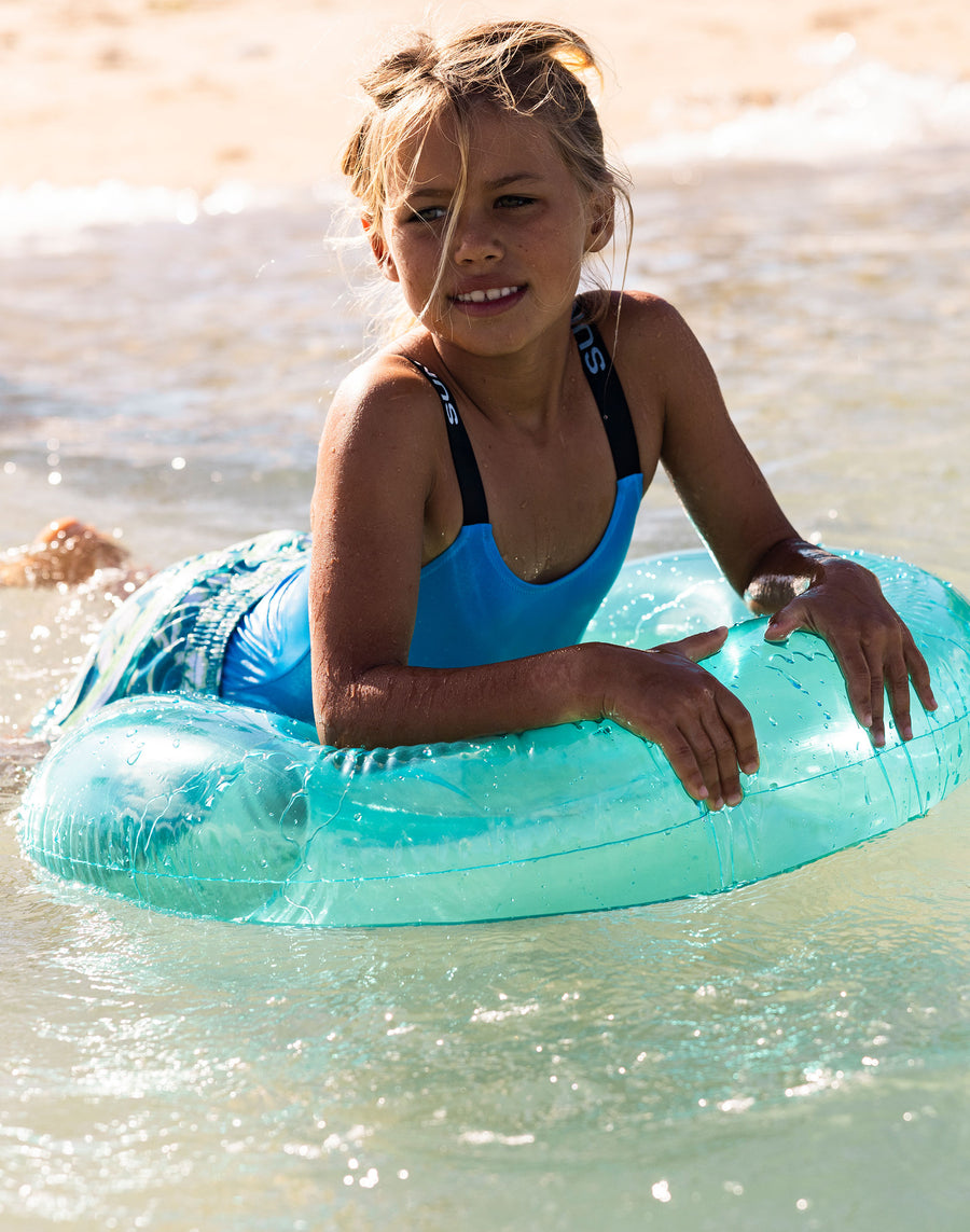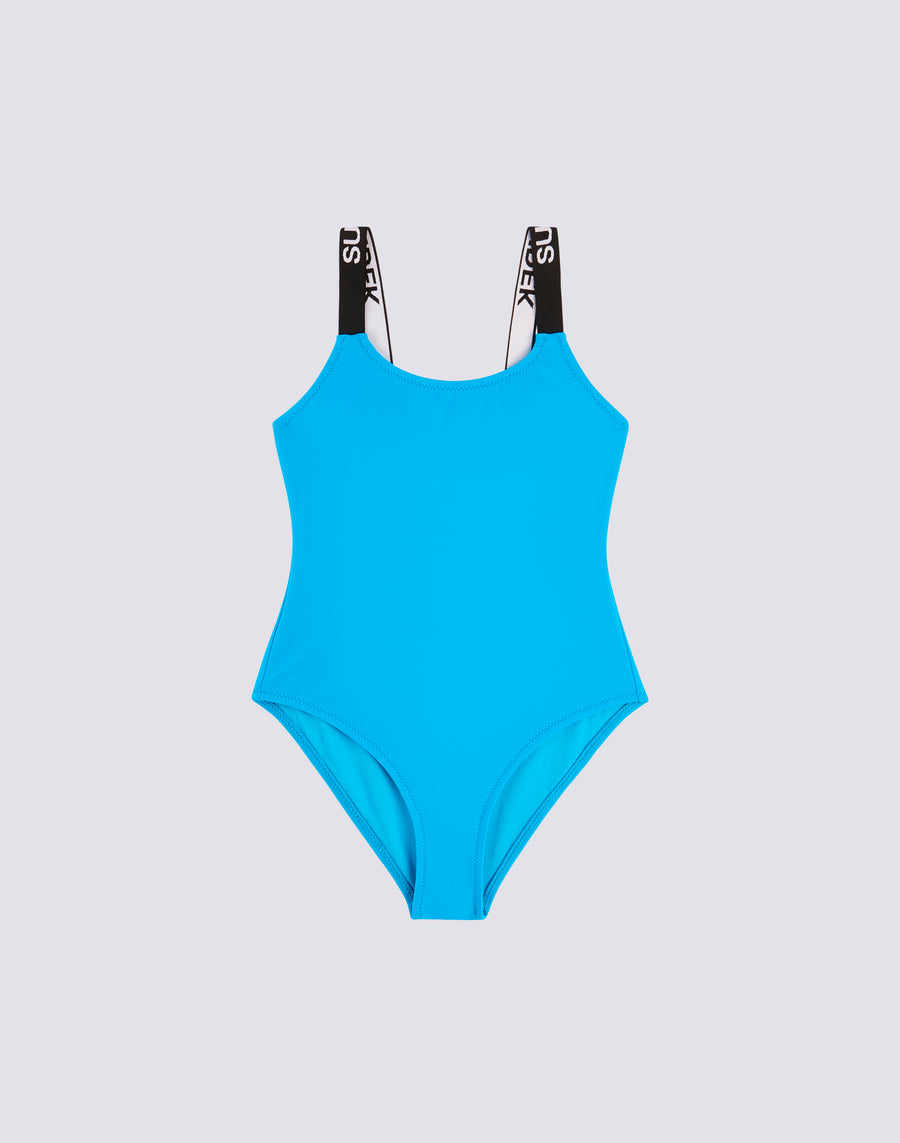 Per le giovanissime che amano i costumi interi capaci di sposare il taglio regular a un carattere super moderno e sportivo, questo è il modello ideale. L'elastico logo a contrasto con la tinta unita del costume crea un gioco di toni colore.