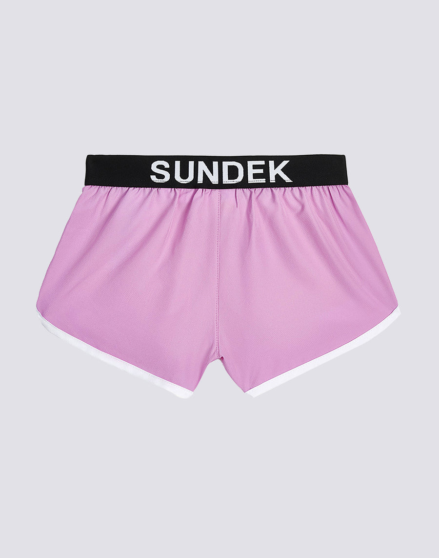 Uno shorts leggero con logo Sundek perfetto da indossare sopra il costume. Facili da infilare, dal tessuto leggero e confortevole, accompagneranno la tua bimba dalla spiaggia ai giochi estivi. Vestibilità regular. Lunghezza 16 cm (taglia 6) misurati sul lato esterno.