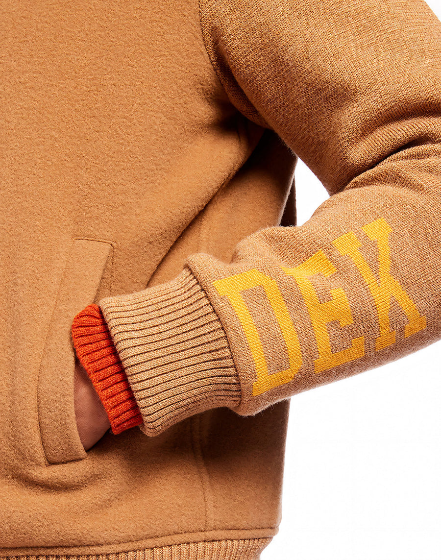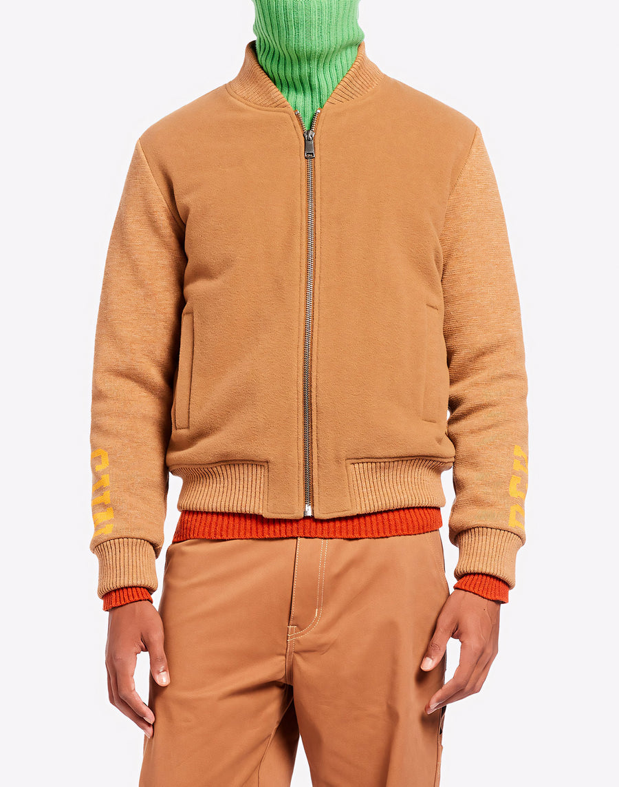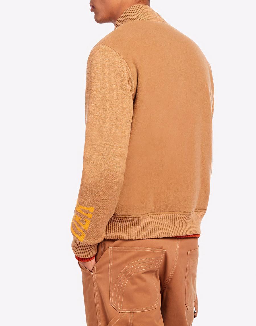 Design essenziale e sportivo per il bomber in lana con zip e logo sulle maniche.