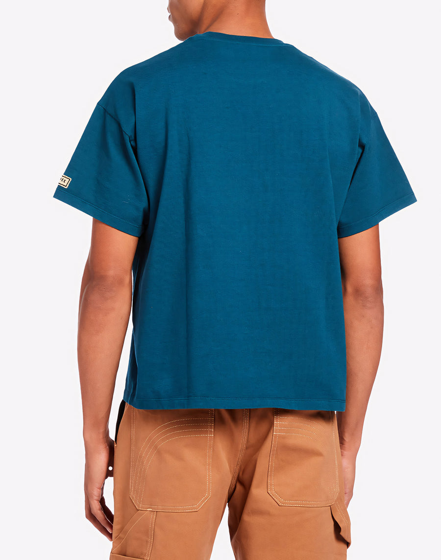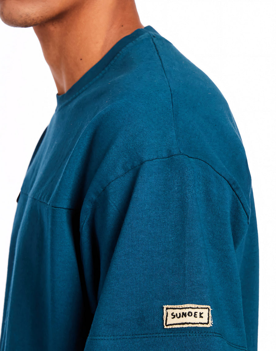 Una t shirt oversize e overdyed girocollo da indossare come e quando vuoi, dalla città, al viaggio. Logo patch sulla manica.