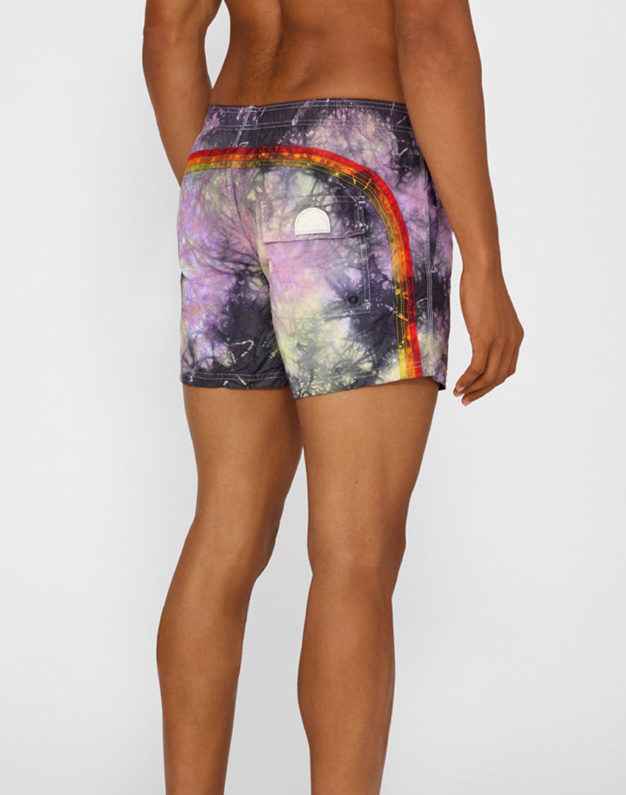 Preparati a cavalcare la prossima onda con il costume da bagno corto a vita elasticata con speciale lavorazione tie-dye, trattato e tinto con tecniche artigianali. Il tessuto storico nylon taffeta e la costruzione del modello lo rende veloce nell'asciugatura e super resistente stagione dopo stagione. Vestibilità a vita bassa.