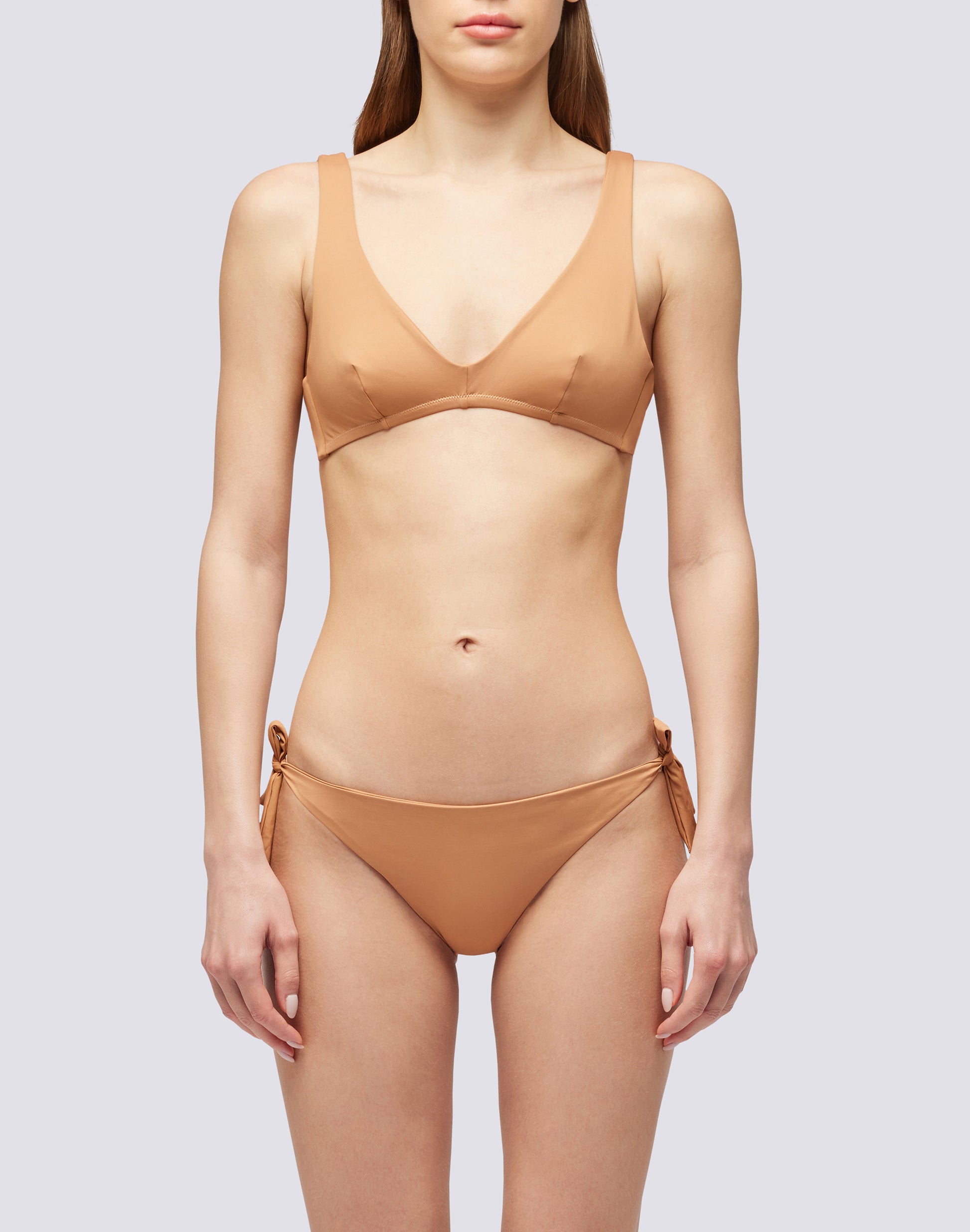 Tessuto doppiato leggerissimo e confortevole per questo top americano elegante e sofisticato con spalline larghe indossabili a reggiseno o da legate dietro al collo. Da abbinare allo slip venduto separatamente.