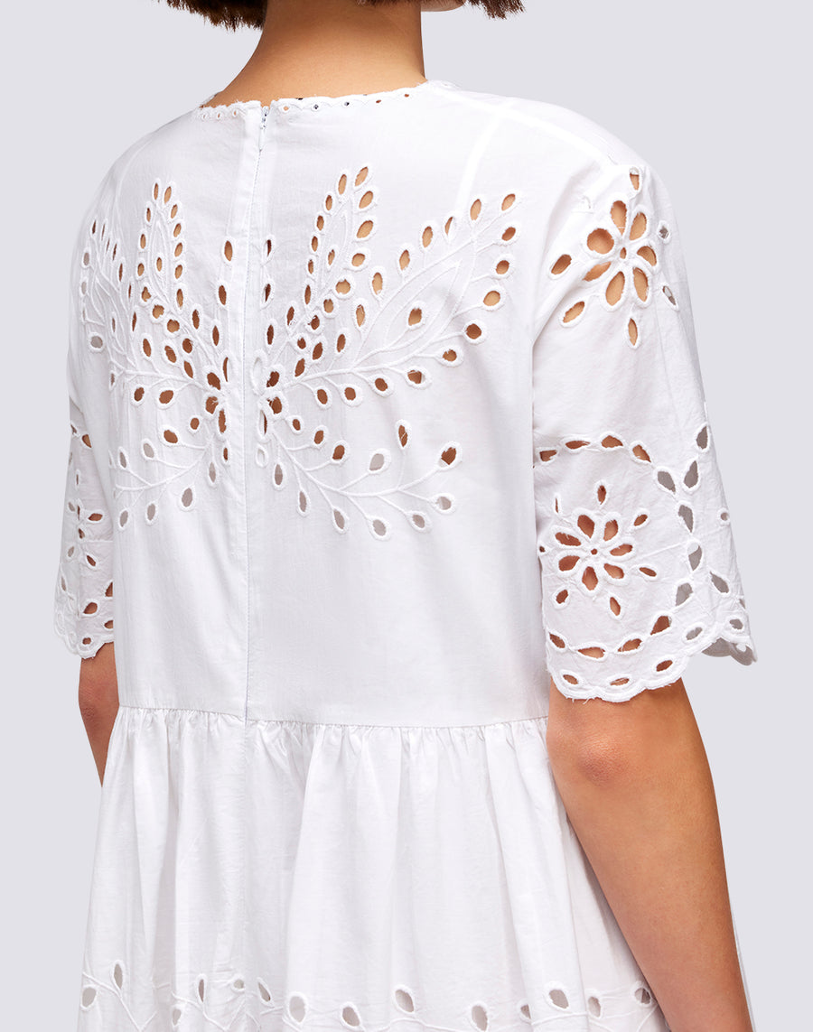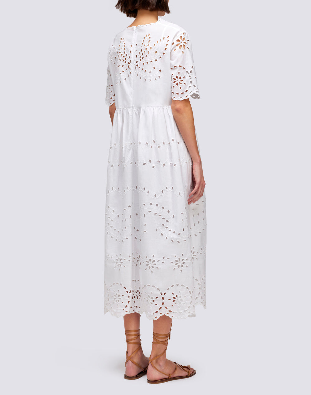 Abito lungo da donna in cotone sangallo, elegante e ideale per le occasioni più speciali.