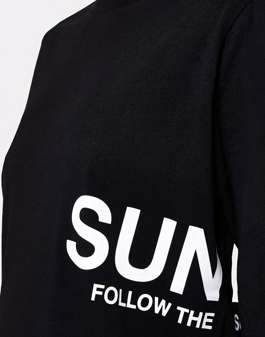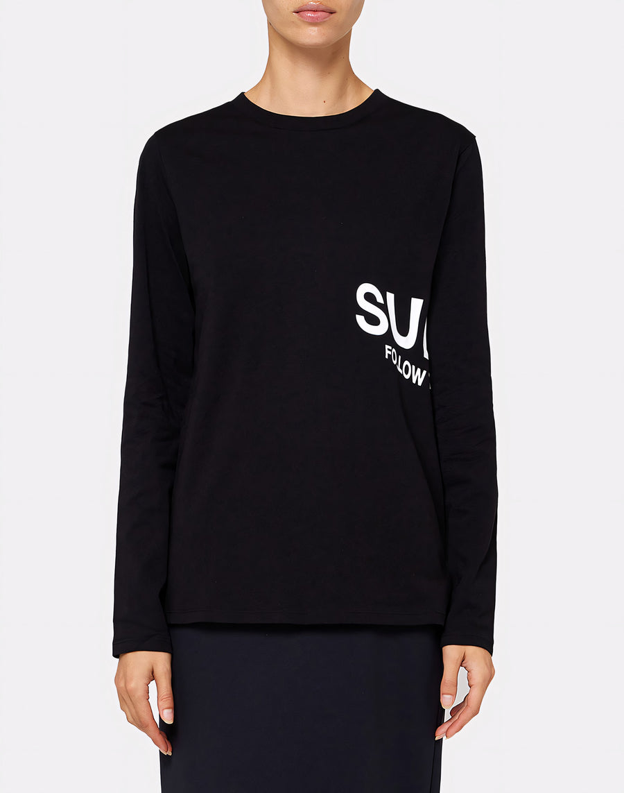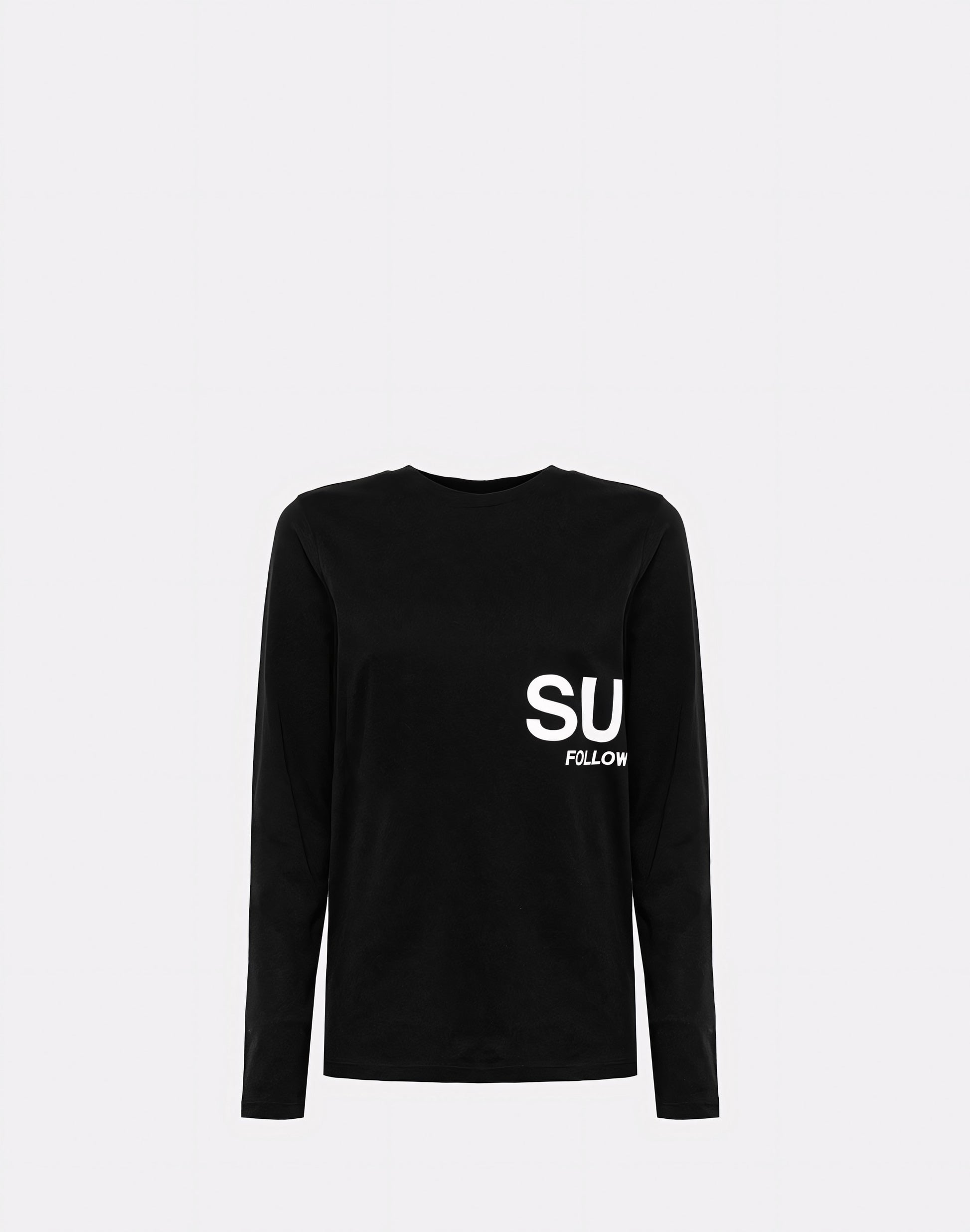 T-shirt manica lunga svasata da donna con maxi slogan Sundek, per tutti i look casual e del tempo libero. Morbida e confortevole, è la t-shirt da indossare di stagione in stagione, da sola o come base per pull e felpe: ti accompagnerà in viaggio, in vacanza e in tutte le occasioni in cui vuoi vestire un capo versatile e con personalità.