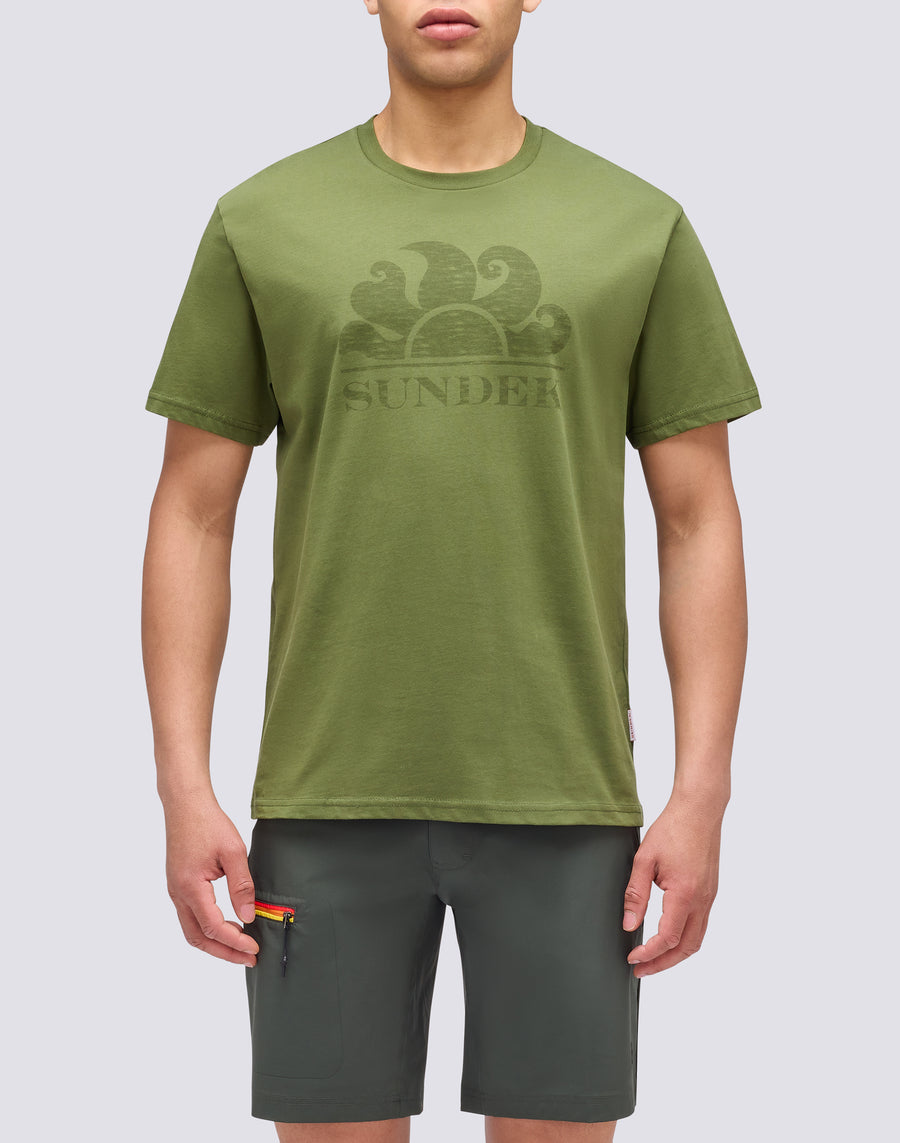 Facile da abbinare nei tuoi look casual, perfetta come base sotto a pull e cardigan. La t-shirt casual da uomo in cotone con maxi logo stampato tono su tono è un jolly del guardaroba, adatta anche in viaggio.