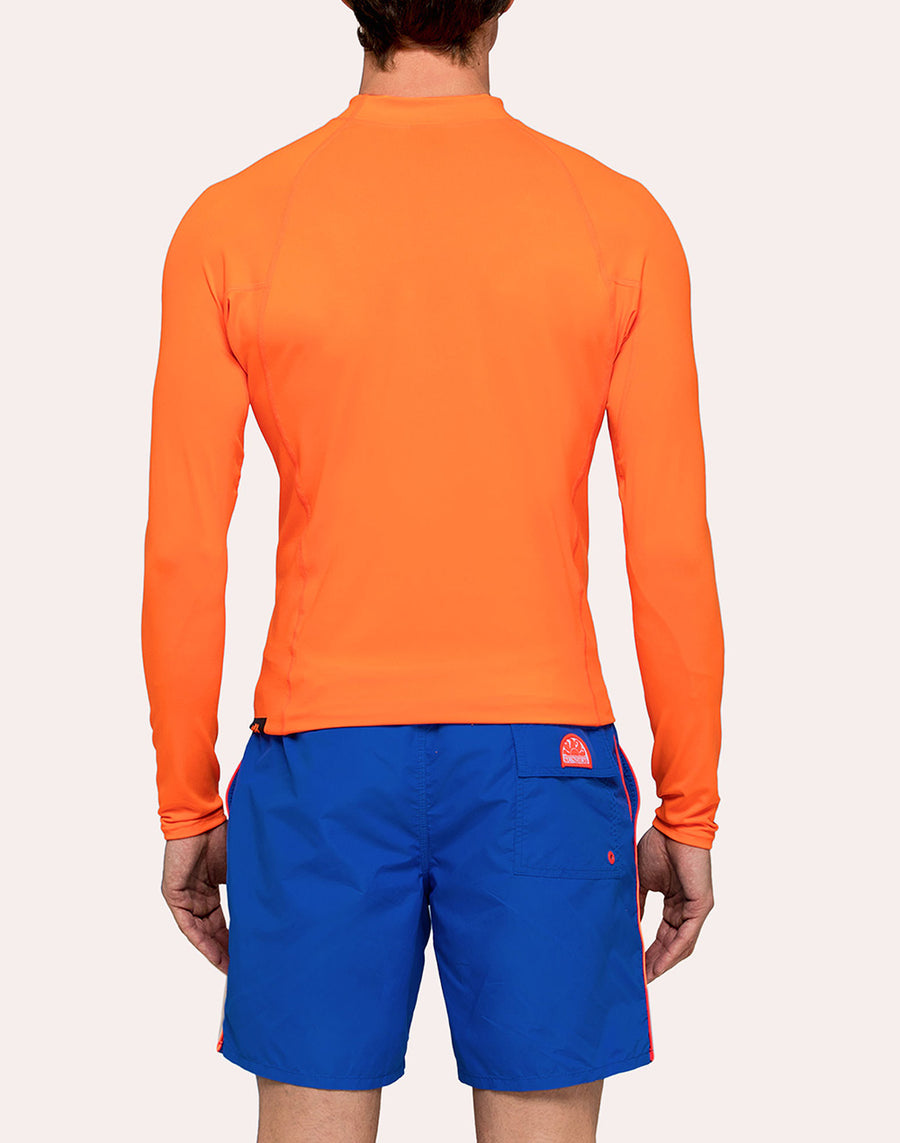 Rashguard a manica lunga, leggera ed elastica: unisce protezione solare 50+, aderenza e massima libertà di movimento. La manica raglan offre spazio di manovra alle spalle e alle braccia. è un modello unisex che puoi usare per nuotare e soprattutto quando resti a lungo in acqua per praticare sport acquatici come il surf o il SUP: indossala per avere la protezione e il comfort che cerchi da una rashguard.