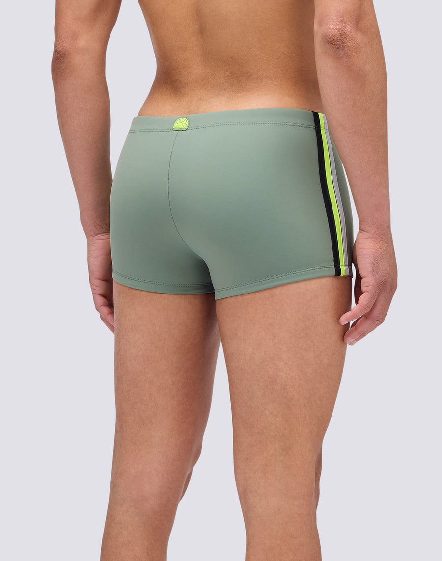 Boxer mare uomo a vita regolabile con coulisse e laccetto a contrasto: è un modello intramontabile al passo con i tempi perché ecosostenibile grazie al tessuto rigenerato ECONYL® Made in Italy. Puoi indossarlo sia per nuotare sia per prendere il sole e abbronzarti. Lunghezza gamba esterna 9"/23 cm (in taglia M).