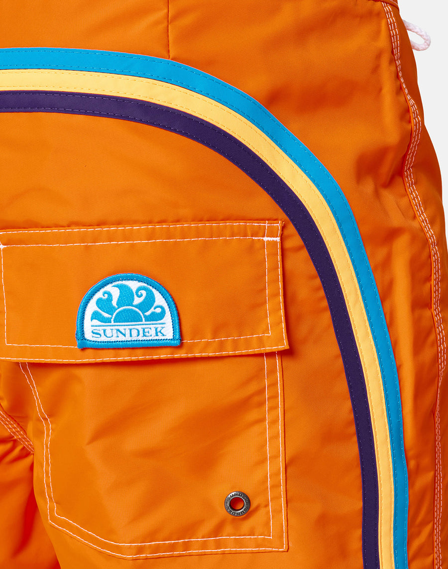 Energia vibrante, colore intenso e l’iconico arcobaleno Sundek che fa capolino per questo costume boxer da uomo. È realizzato nel nostro tessuto storico nylon taffetà, dalla mano serica confortevole e ad asciugatura rapida, mentre le cuciture a tre aghi lo rendono resistente vacanza dopo vacanza.