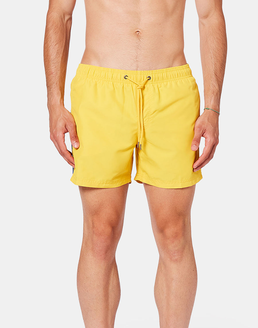 È divertente, brillante e ama l’ambiente: il costume boxer da uomo con arcobaleno è in poliestere REPREVE® realizzato dal riciclo delle bottiglie di plastica. Sostenibilità e performance vanno a braccetto perché si tratta di un tessuto leggero che si asciuga rapidamente. Inoltre, le cuciture a tre aghi che rifiniscono il modello garantiscono una lunga durata nel tempo. Da mettere subito in valigia.